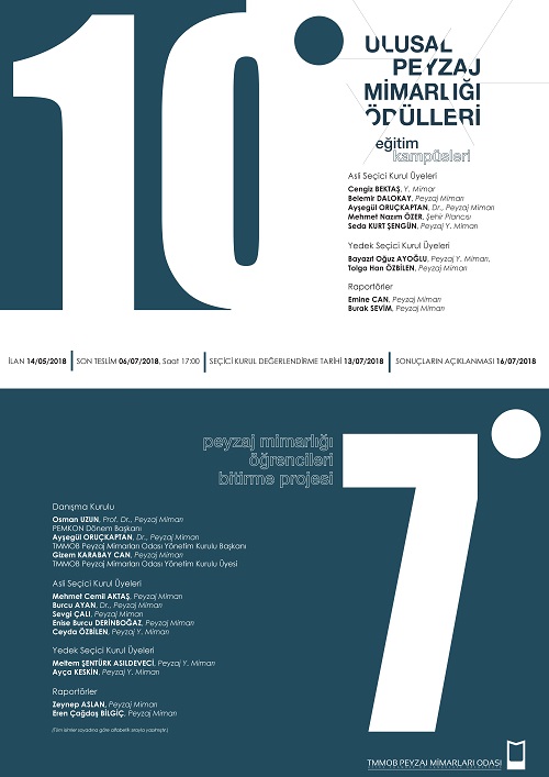 10. Ulusal Peyzaj Mimarlığı Ödülleri Ve 7. Peyzaj Mimarlığı Bölümü Öğrencileri Bitirme Projesi Ödülleri aynı tarihlerde değerlendirilecektir.