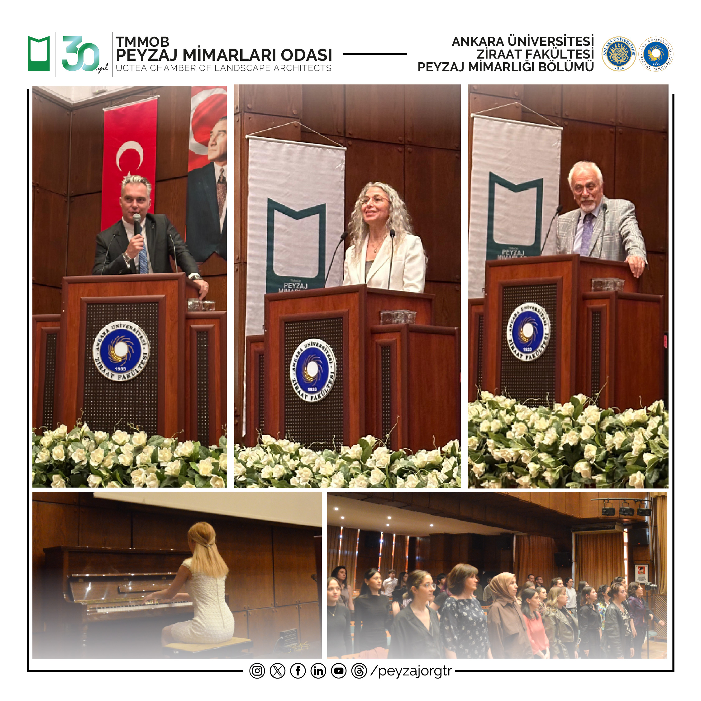 Odamızın kuruluşunun 30. yıl dönümünü kutladığımız "13 Mayıs Ulusal Peyzaj Mimarlığı Günü" etkinlikleri kapsamında düzenlediğimiz "Cumhuriyetimizin 2. Yüzyılında Peyzaj Mimarlığı Paneli, 13 Mayıs Ulusal Peyzaj Mimarlığı Günü Kutlamaları, Meslekte 30. Yıl Plaket Takdim Töreni ve Peyzaj Mimarlığı Öğrencileri canlı müzik performansı" etkinlikleri 11 Mayıs 2024 Cumartesi günü Ankara Üniversitesi ile işbirliği içinde gerçekleştirilmiştir.