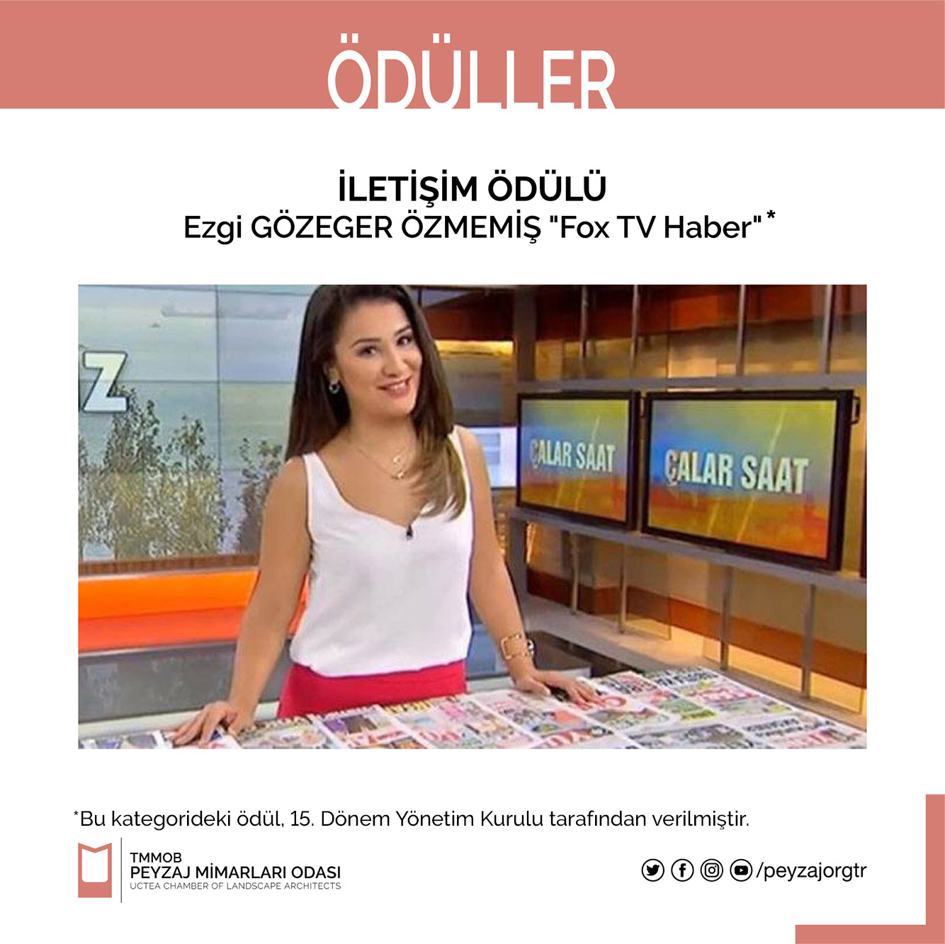 Son bir yılda; doğal alanlar, iklim krizi, orman yangınları ve çevre sorunları konusunda hazırladığı haberler ile sunum yaptığı programlarda bu konuları özellikle irdelemesi ve kamuoyunun gündeminde tutması nedeniyle Sn. Ezgi GÖZEGER ÖZMEMİŞ`e 15. Dönem Yönetim Kurulu tarafından İletişim Ödülü verilmesine karar verilmiştir.