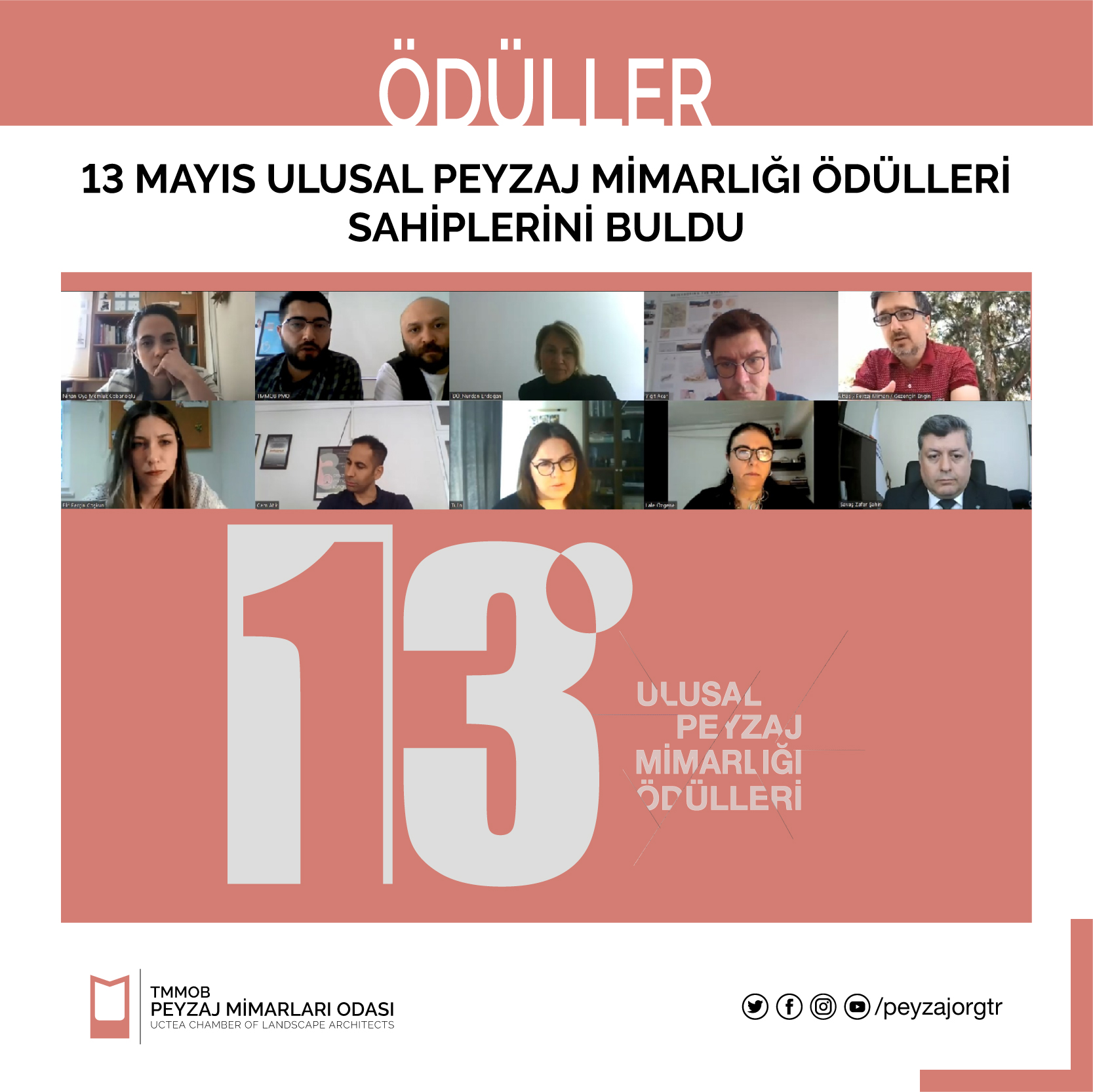 Ayrıca 13. Ulusal Peyzaj Mimarlığı Ödülleri kapsamında TMMOB Peyzaj Mimarları Odası 15. Dönem Yönetim Kurulu tarafından verilen "İletişim Ödülü", "Mesleğe Katkı Ödülü" ve "Onur Ödülü" değerlendirmeleri de tamamlanarak bu ödülleri almaya hak kazanan ödül sahipleri belirlenmiştir.