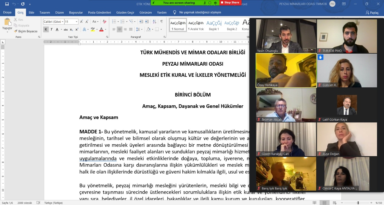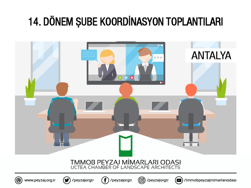 TMMOB Peyzaj Mimarları Odası 14. Dönem Yönetim Kurulu tarafından şubelerle yapılacak koordinasyon toplantılarının Antalya ayağı 18 Kasım 2020 tarihinde çevrim içi olarak gerçekleştirildi.