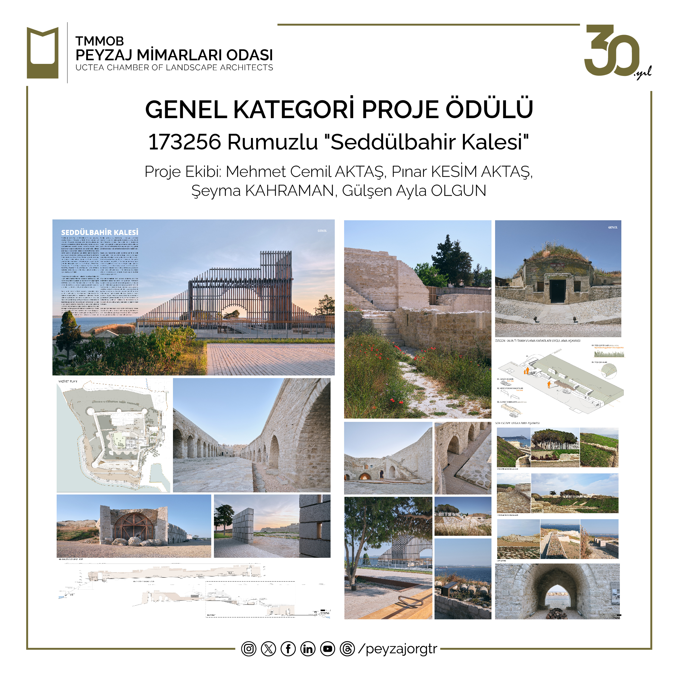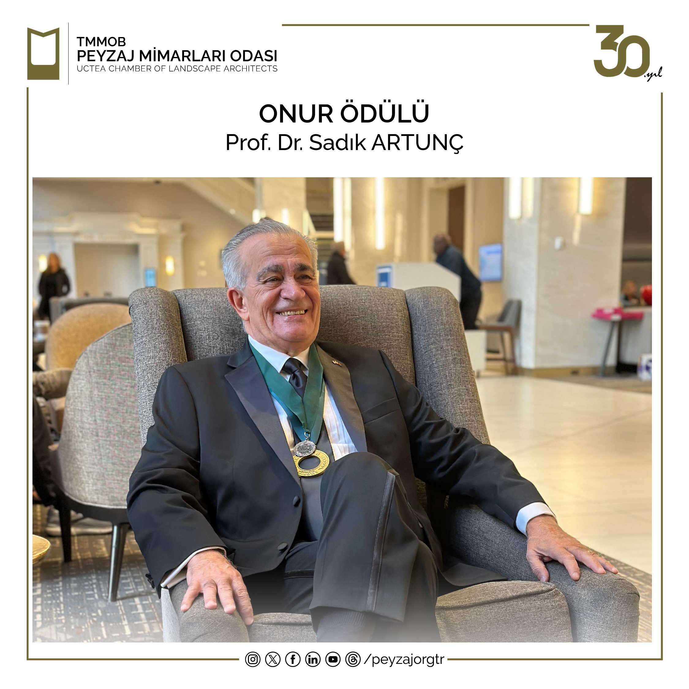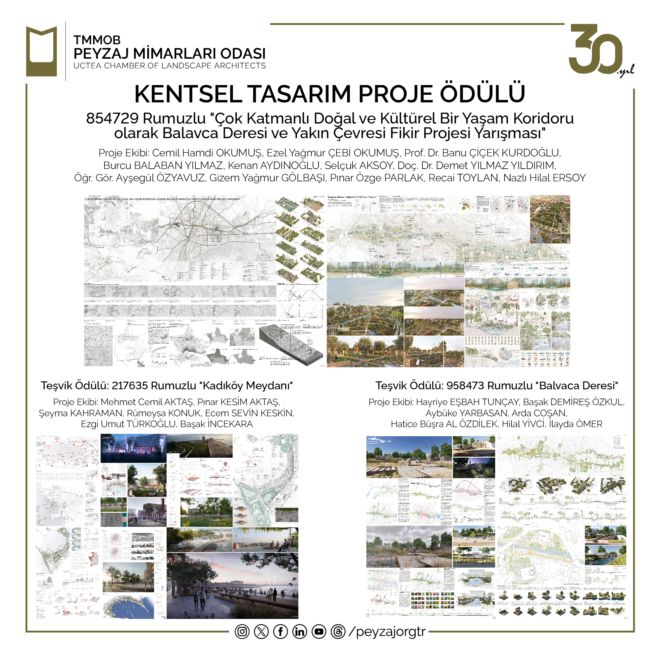 15. Ulusal Peyzaj Mimarlığı Ödülleri‘ne katılım sağlayan tüm meslektaşlarımıza emek ve katkıları için teşekkür eder, ödül kazanan tüm meslektaşlarımızı tebrik ederiz.