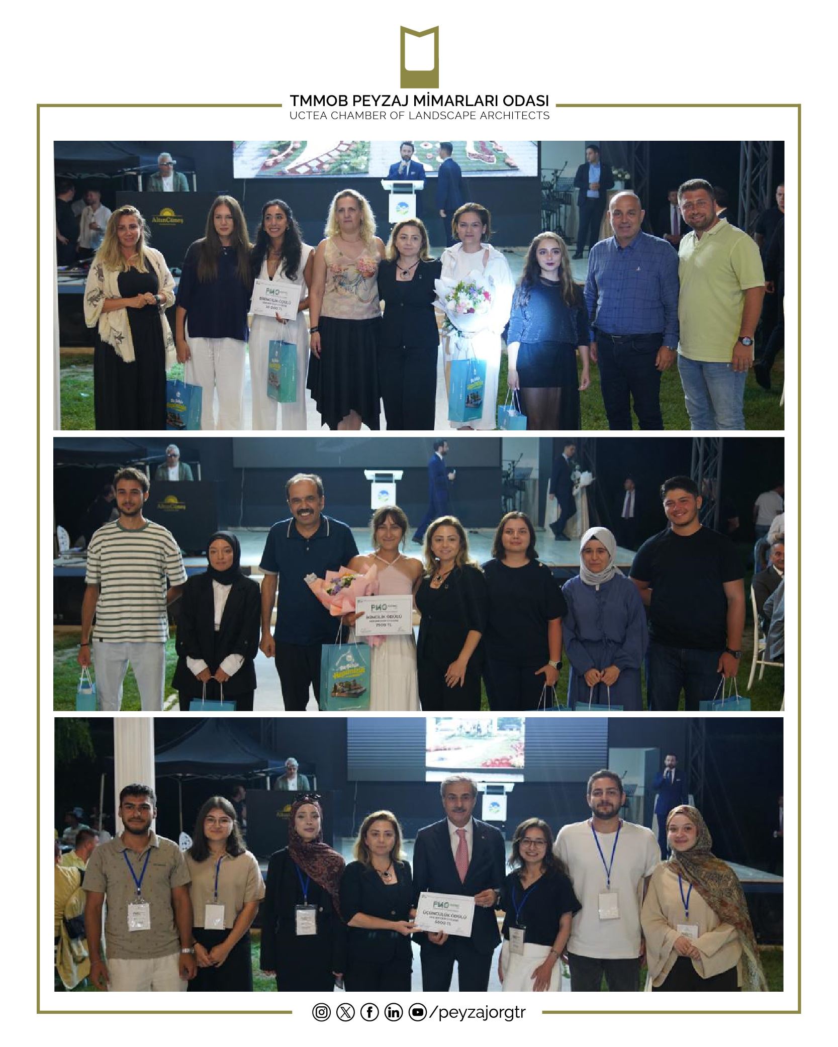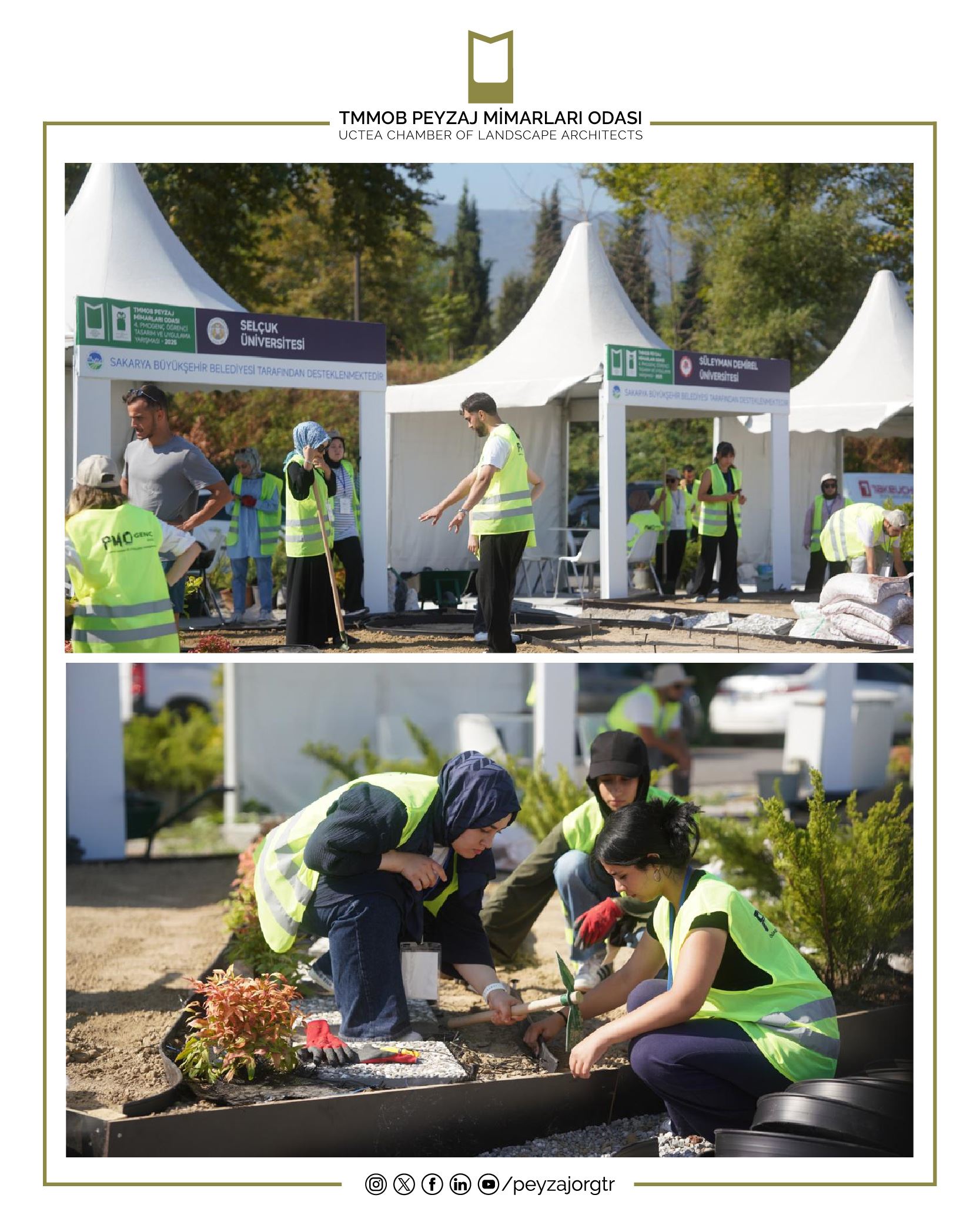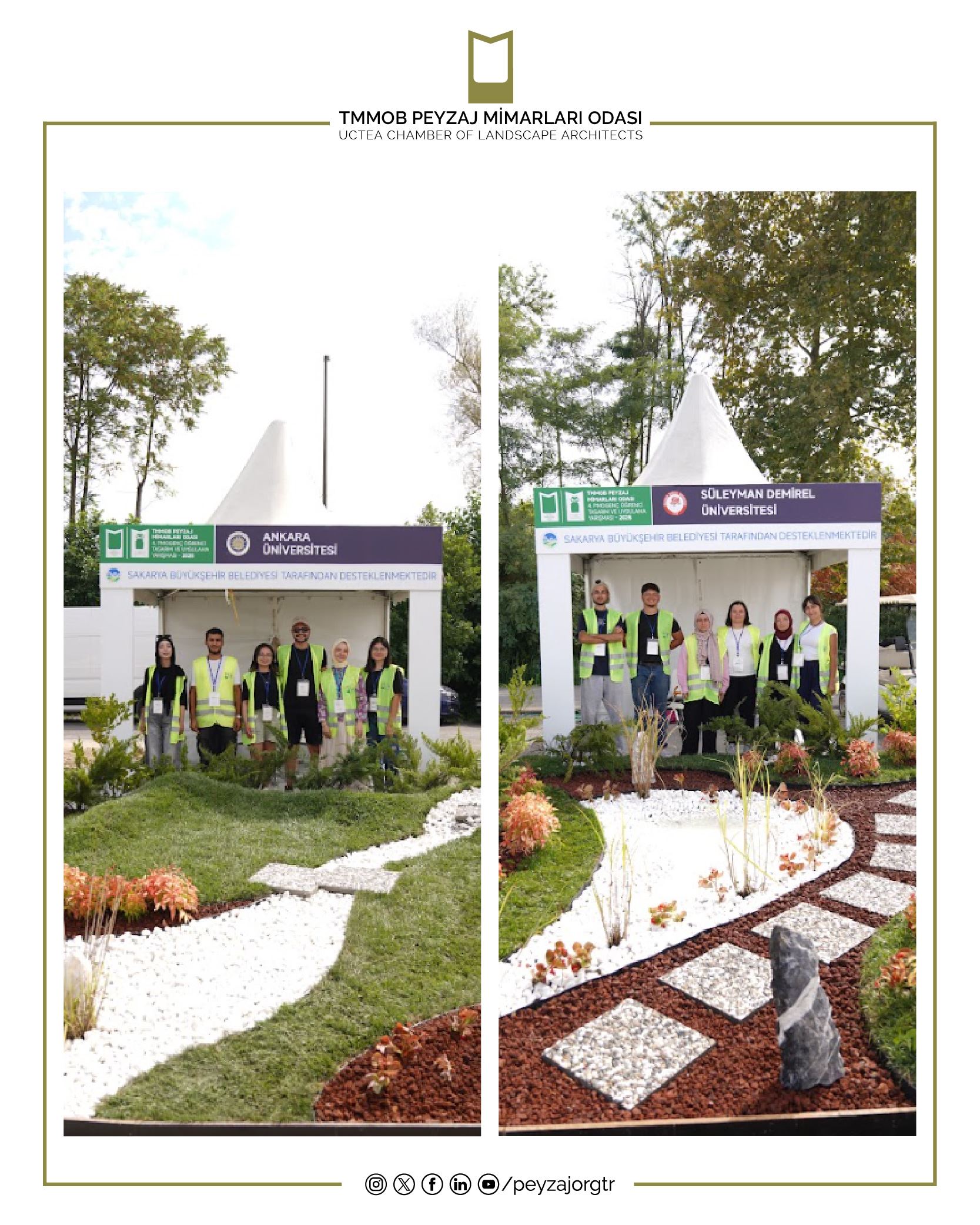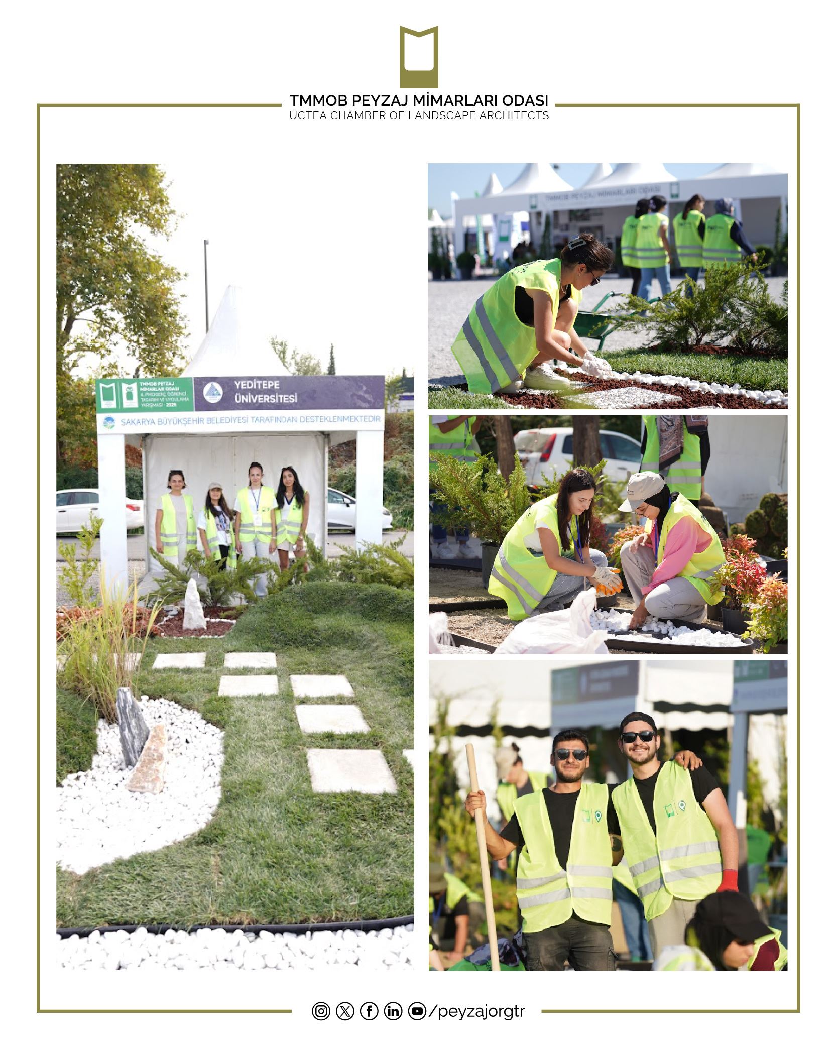 Meslektaş adaylarımızın tasarladıklarını uygulayabildikleri bir fırsat olan 4. PMOGenç Tasarım ve Uygulama Yarışması`na katılan tüm öğrencilerimizi tebrik ediyor, bizimle iletişim içinde olan Peyzaj Mimarlığı Bölümlerimize, Fuarın gerçekleşmesini sağlayan Sakarya Büyükşehir Belediyesine, organizasyonun başından sonuna kadar Odamız ve düzenlediğimiz yarışmamızla yakından ilgilenen Karma Fuarcılık ve ekibine, sponsorlarımız Kandemir Botanik, Önder Botanik ve Ada Marka Rulo Çim’e, tüm meslektaşlarımıza, sektör paydaşlarımıza, öğrencilere, basın kuruluşlarına ve fuar katılımcılarına teşekkürlerimizi sunuyoruz.