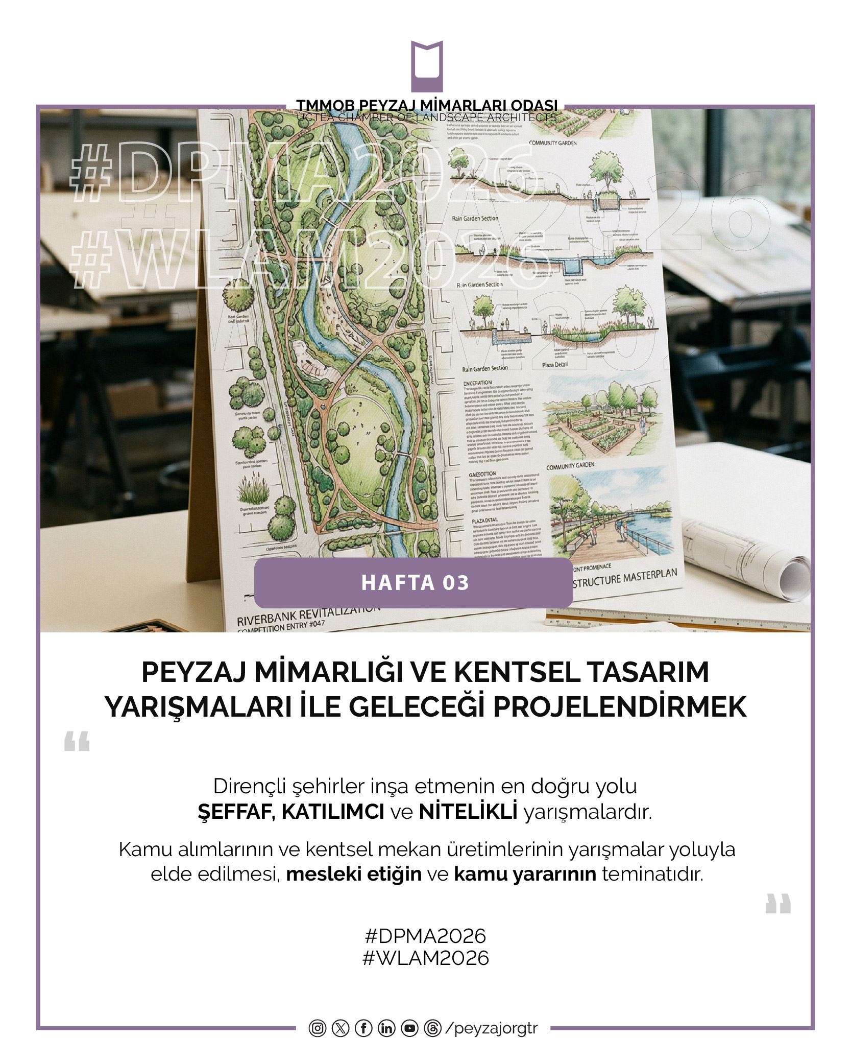 Her yıl Nisan ayında küresel çapta kutlanan Dünya Peyzaj Mimarlığı Ayı (WLAM), bu yıl Uluslararası Peyzaj Mimarları Federasyonu (IFLA) ve Amerikan Peyzaj Mimarları Derneği (ASLA) öncülüğünde "Eylemde Peyzaj Mimarlığı" (Landscape Architecture in Action) temasıyla karşılanmaktadır. TMMOB Peyzaj Mimarları Odası olarak, bu küresel çağrıyı ülkemizin içinden geçtiği ekolojik, kentsel ve ekonomik krizlerle harmanlıyor; 2026 yılı Nisan ayı gündemimizi "Ölçekler Arası İklim Eylemi: Yerelden Küresele" başlığıyla kamuoyuna ilan ediyoruz.