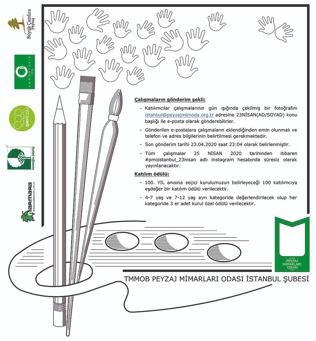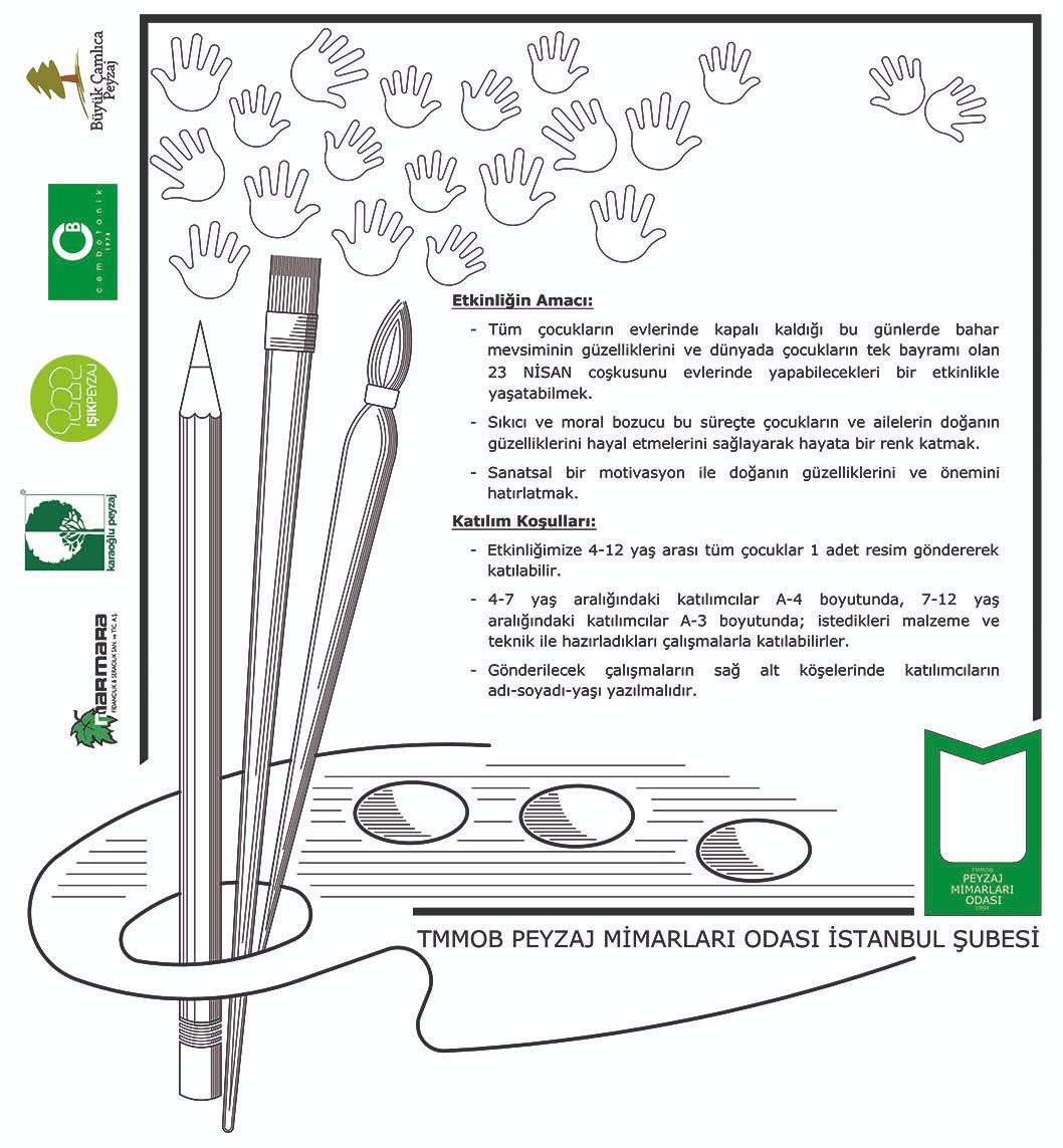 Peyzaj Mimarları Odası İstanbul Şubesi olarak bölgemizin en büyük kentinde doğaya bu kadar uzak kaldığımız ve kapalı alanlarda mahsur kaldığımız bu günlerde bile doğaya verdiğimiz önemi başta çocuklar olmak üzere tüm topluma duyurmak istedik. Dünyada çocuklara ait tek bayram olan 23 NİSAN‘ ı evde geçirmek zorunda olan tüm çocuklarımızı etkinliğimize katılmaya davet ediyoruz.