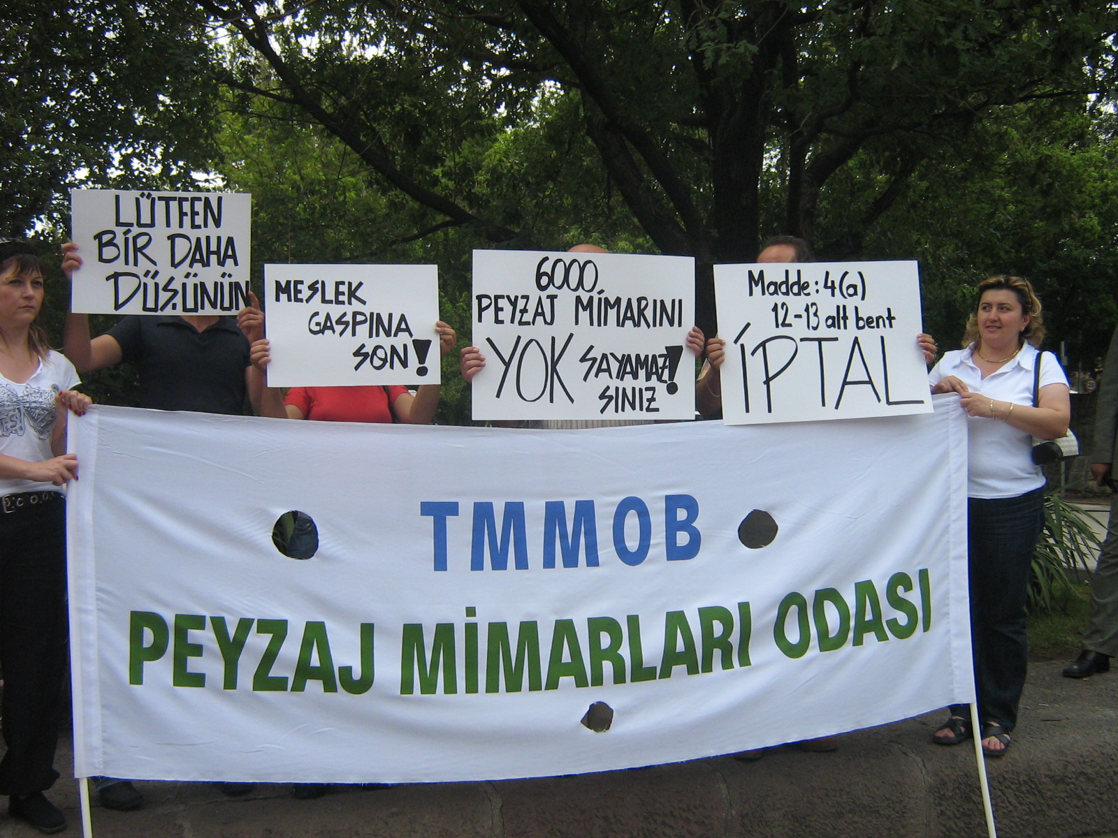 Orman Mühendisliği-Orman Endüstri Mühendisliği-Ağaç İşleri Endüstri Mühendisliği Yasa tasarısı adı altında, Cumhuriyet tarihinde ilk olma özelliğini de taşıyan ve üst birliğimiz olan TMMOB' nin de yok sayılarak TBMM’ ye getirilen meslek yasasında Peyzaj Mimarlığı mesleğinin uzmanlık alanları ihlali ve gaspı söz konusu idi…