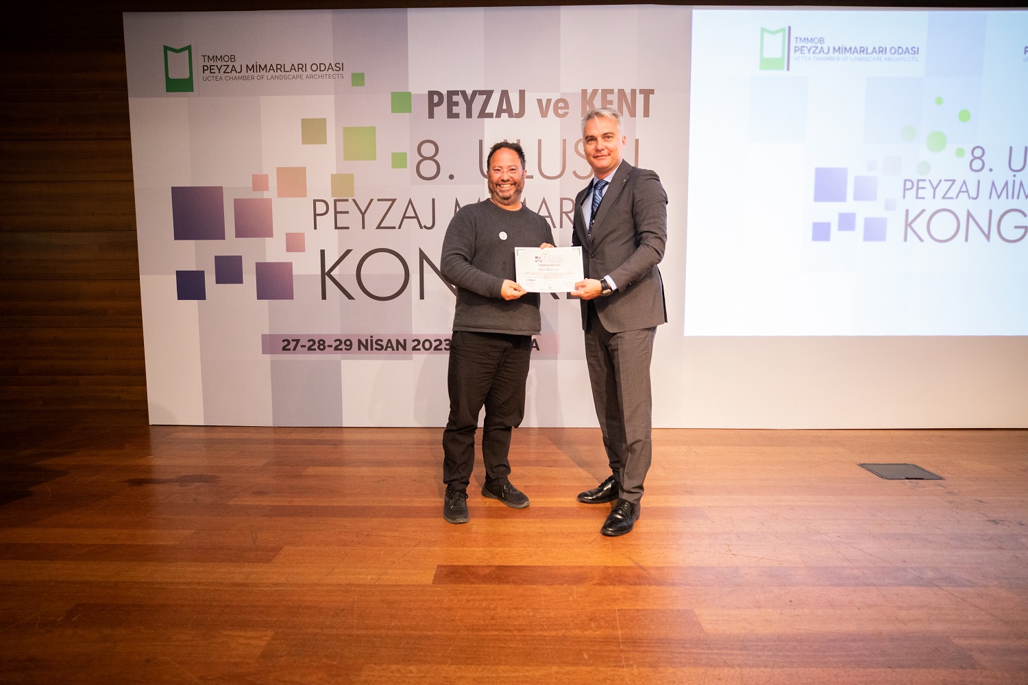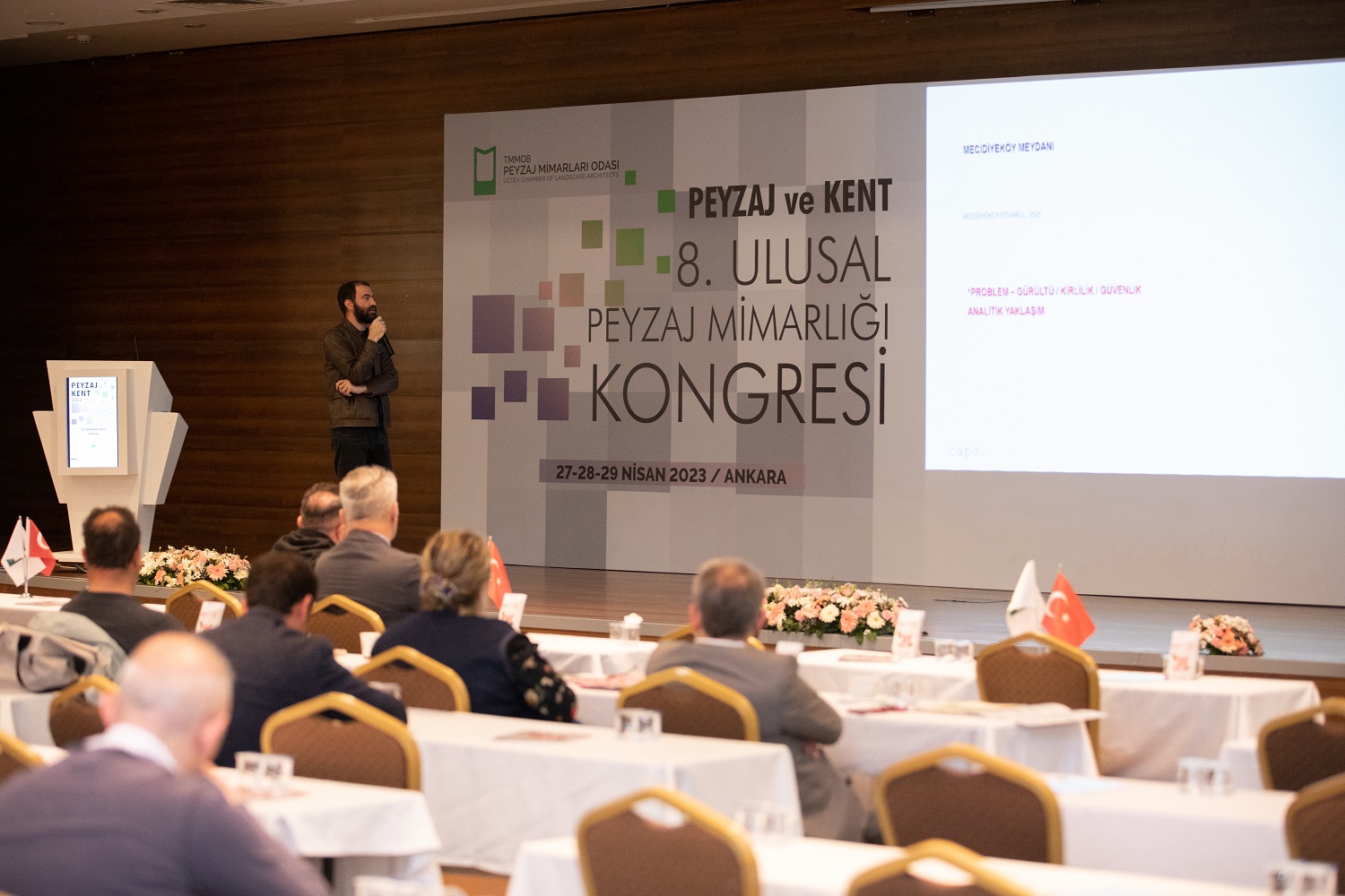 Odamız tarafından düzenlenen 8. Ulusal Peyzaj Mimarlığı Kongresi "Peyzaj ve Kent" ana temasıyla 27-28-29 Nisan 2023 tarihleri arasında Ankara`da gerçekleştirilerek, 21 davetli konuşmacı, 2 paralel salonda 14 farklı oturumda 43 sözlü bildiri sunumu, üç gün boyunca yaklaşık 300 kişinin katılımı ile başarıyla tamamlanmıştır.