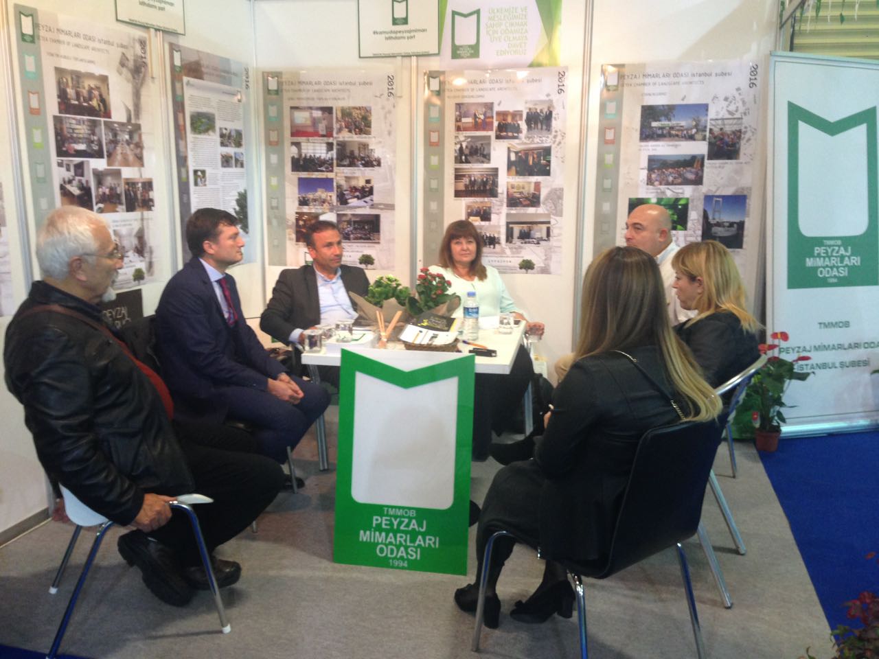 TMMOB Peyzaj Mimarları Odası İstanbul Şubesi Olarak; "KAMUDA PEYZAJ MİMARI İSDİHDAMI ŞART" temamız ile 9. Hall 923/A No`lu standımızda Şube Başkanımız Sn. Murat ERMEYDAN ve Yönetim Kurulu Üyelerimiz ile birlikte katılım gösterdik.