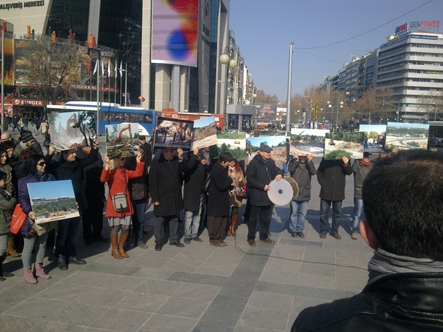 Başkent Dayanışmasının " 1925 Yılında Atatürk tarafından Cumhuriyetin Özgürleşme Projesi olarak kurulan Atatürk Orman Çiftliği, Ankara`nın akciğerleridir. Akciğerlerimiz yok ediliyor. Atatürk Orman Çiftliği ölüyor, biz nefes alamıyoruz. Atatürk Orman Çiftliği talanı her dönemde devam etti. Ama en çok 12 yıllık iktidarda olduğu, " Talan devam ediyor. Yeşilin ortasından geçen yollar, öfke yollarını işaret ediyor. Binlerce ağaç kesilerek yapılan Başbakanlık Hizmet Binası lehimize gelen bilirkişi raporlarına rağmen durmuyor. Hayvanat Bahçesi " Vahşetin Krallığı" projesiyle, AOÇ de herkesin gözü önünde vahşet yapılıyor. Açılmış olan 25 davamıza rağmen, yargı süreci uzuyor Atatürk Orman Çiftliği bizden çocuklarımızdan çalınıyor." Çağrısı ile Güven Park`ta yapılan basın açıklamasında yer aldık.