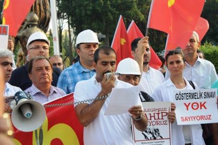 Her geçen gün iktidarın hak ihlallerine bir yenisi ekleniyor. Bugün buraya, bunun örneklerinden biri olan teknik öğretmenlere tamamlama sınavı ile mühendislik unvanı verilerek, mühendis ve mimarların var olan sorunlarının katlanılmak istenmesini protesto etmek ve sınavın iptal edilmesi gerektiğini kamuoyuyla paylaşmak üzere geldik.