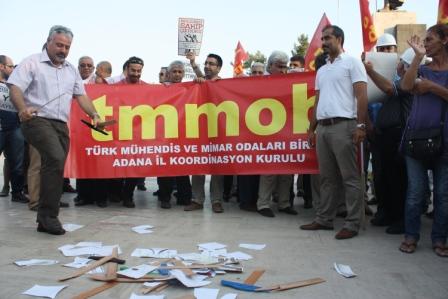 TMMOB Adana İl Koordinasyon Kurulu Sekreteri Nazım Biçer, "mühendislik tamamlama programı" uygulamasına karşı bir basın açıklaması düzenledi. Adana'da Atatürk Park'ında toplanan TMMOB'ye bağlı odaların Adana şubelerine üye mühendisler, iktidarın uygulamalarına tepkilerini diplomalarını yırtarak ve mesleki malzemelerini kırarak dile getirdi.