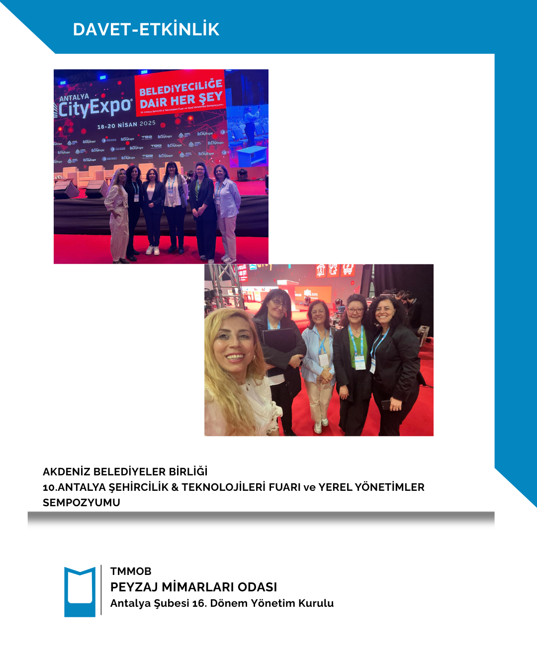 18-19-20 Nisan 2025 tarihleri arasında Akdeniz Belediyeler Birliği tarafından düzenlenen 10. Antalya Şehircilik, Teknolojileri Fuarı ve Yerel Yönetimler Sempozyumu’na şubemizi temsilen Şube Başkanımız Gülsüm Kıldan katılım sağlamıştır.