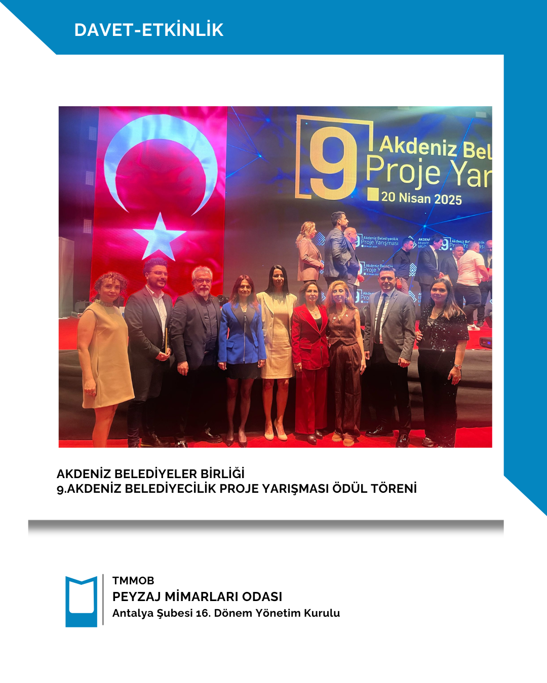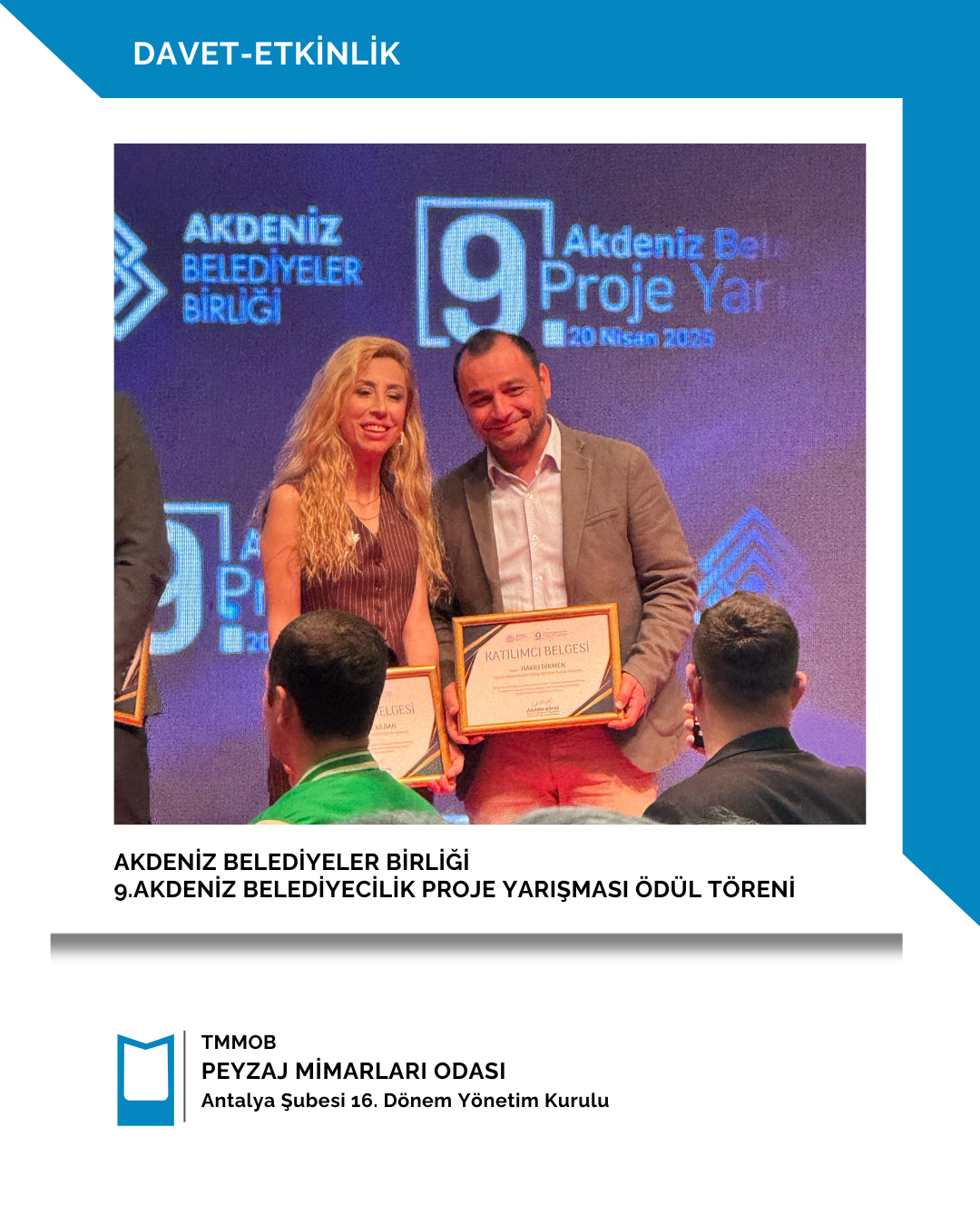 Akdeniz Belediyeler Birliği 9.Akdeniz Belediyecilik Proje Yarışması Ödül Törenine şubemiz temsilen Şube Başkanı Gülsüm KILDAN katılım sağlamıştır.