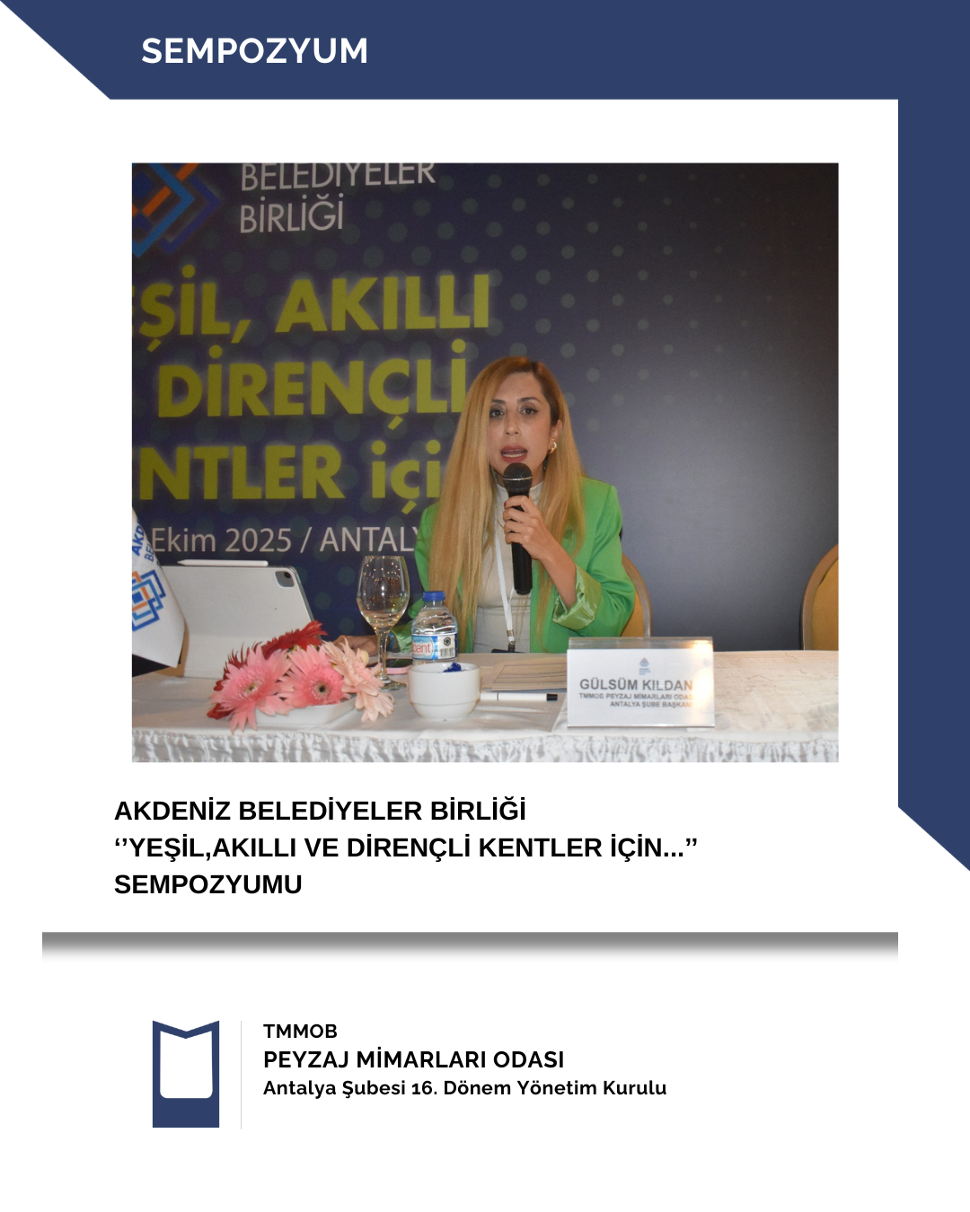 🔹TMMOB PEYZAJ MİMARLARI ODASI ANTALYA ŞUBE BAŞKANI GÜLSÜM KILDAN “Kentler İçin Peyzajla Gelecek Kurmak: Değişen İklim Koşullarına Duyarlı Olmak ve Sürdürülebilir Kentler Mümkün”