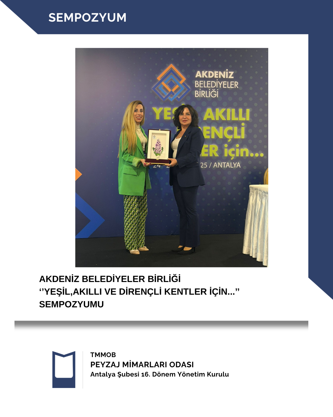 25 Ekim 2025 tarihinde Akdeniz Belediyeler Birliği tarafından "Yeşil, Akıllı ve Dirençli Kentler İçin..." Sempozyumu gerçekleştirilmiştir.