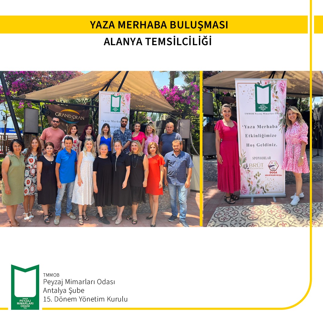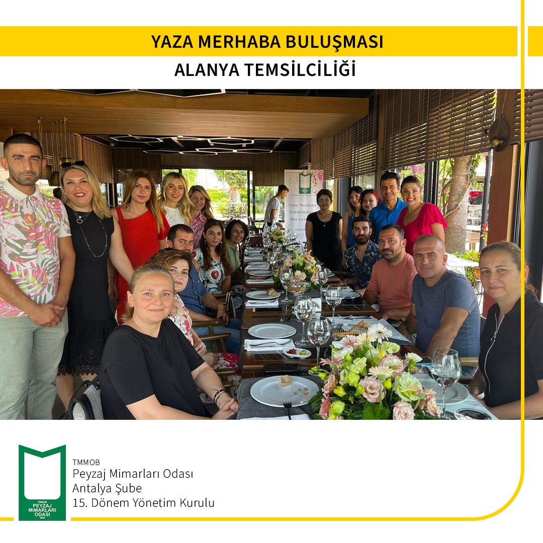 09 Haziran 2022 tarihinde TMMOB Peyzaj Mimarları Odası Antalya Şube ve Alanya Temsilciliği olarak Brüt Botanik ve Doğa Süs Bitkileri sponsorluklarında Yaza Merhaba Buluşması kapsamında yemek etkinliği gerçekleştirilmiştir.