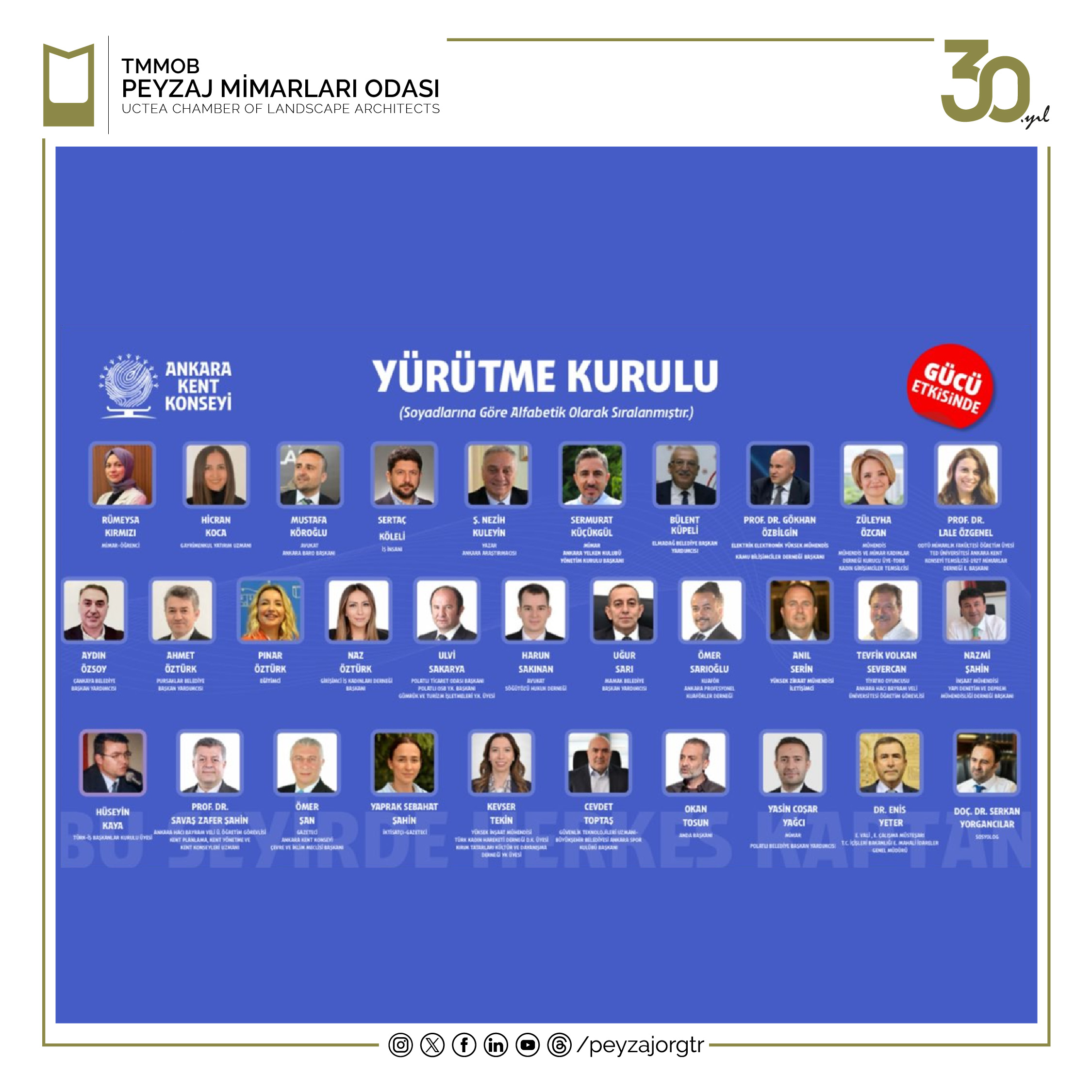Ankara Kent Konseyi 6. Olağan Genel Kurulu 7 Temmuz 2024 günü 2450 delegenin katılımıyla gerçekleştirilmiştir. Ankara Kent Konseyi`nin Yürütme Kurulu Başkanlığına yeniden Halil İbrahim YILMAZ seçilirken Odamız 16. Dönem Yönetim Kurulu Başkanı Barış IŞIK Yürütme Kurulu`nda yer almıştır.