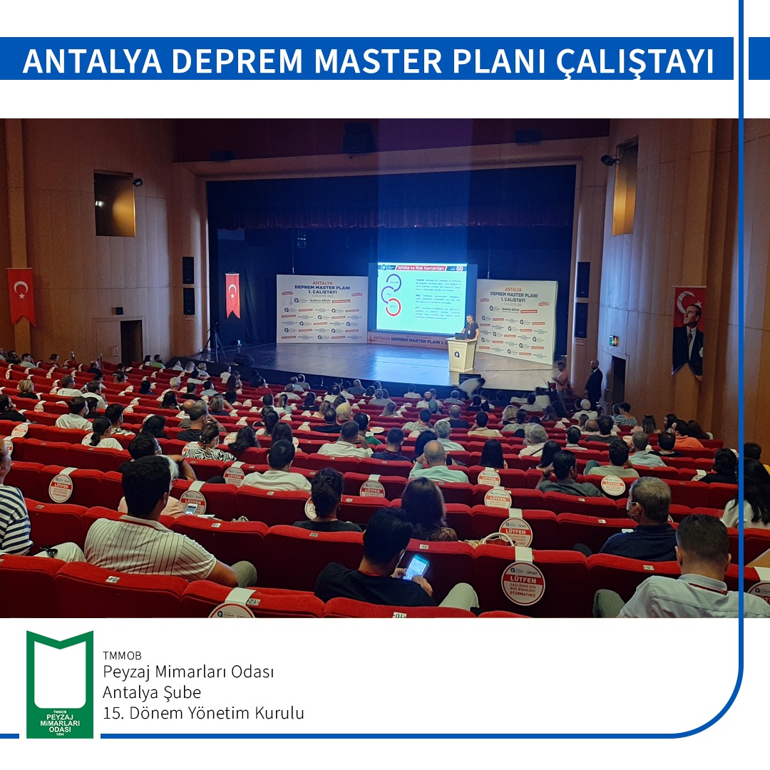 11 Ağustos 2022 tarihinde Antalya Büyükşehir Belediyesi tarafından düzenlenen ‘`Antalya Deprem Master Planı 1. Çalıştayı ‘` Atatürk Kültür Merkezi`nde gerçekleştirilmiştir.