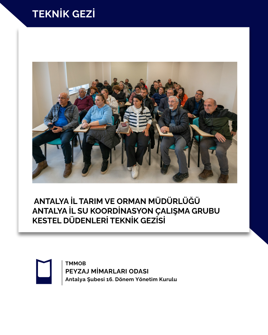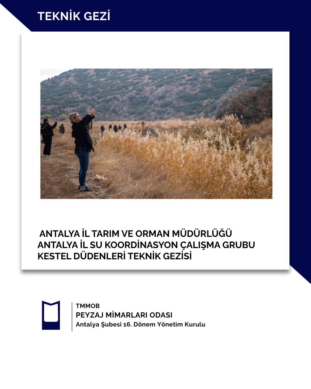 07 Kasım 2025 tarihinde Antalya İl tarım Müdürlüğü tarafından Antalya İl Su Koordinasyon Çalışma Grubu Kestel Düdenleri Teknik Gezisine Şubemizi Temsilen şube üyesi Peyzaj Yüksek Mimarı Risale Başak Bezmiş katılım sağlamıştır.