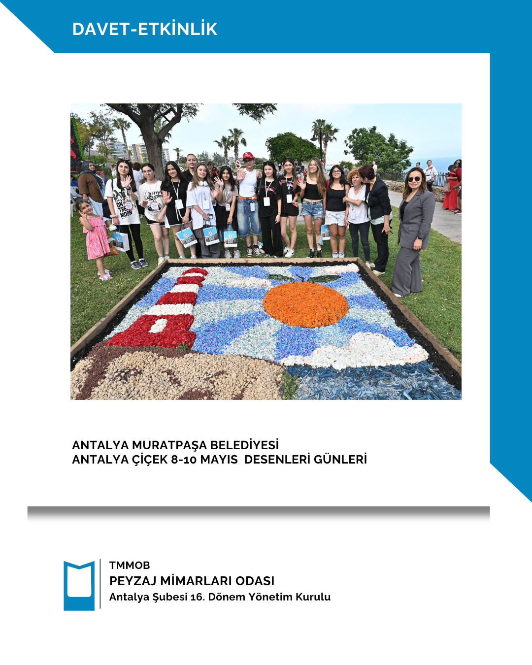 9 Mayıs 2025 tarihinde Antalya Muratpaşa Belediyesi`nin bu yıl ilk kez düzenlediği Antalya Çicek Desenleri Günleri kapsamında düzenlenen etkinliğe şubemizi temsilen şube başkanı Gülsüm KILDAN katılım sağlamıştır.