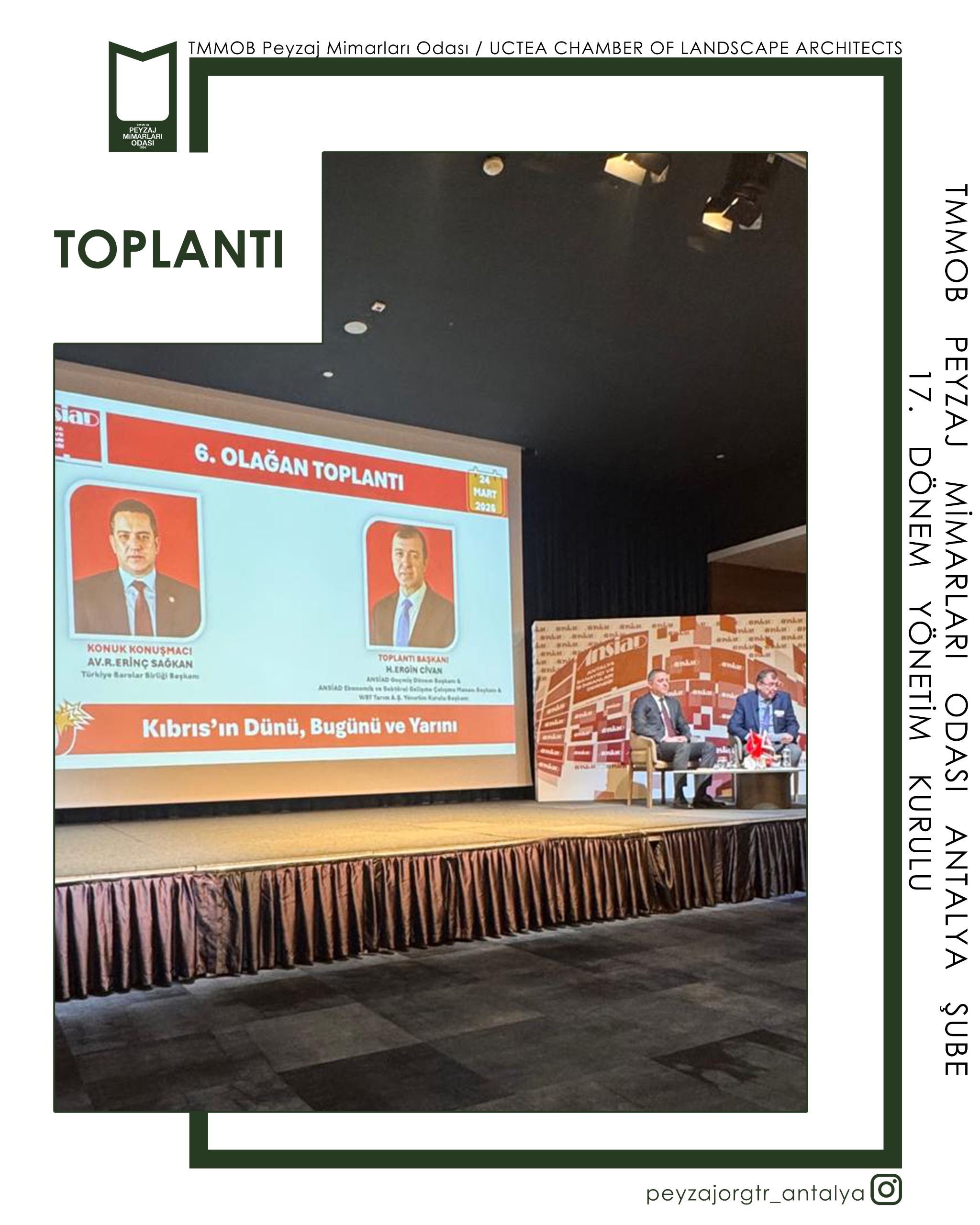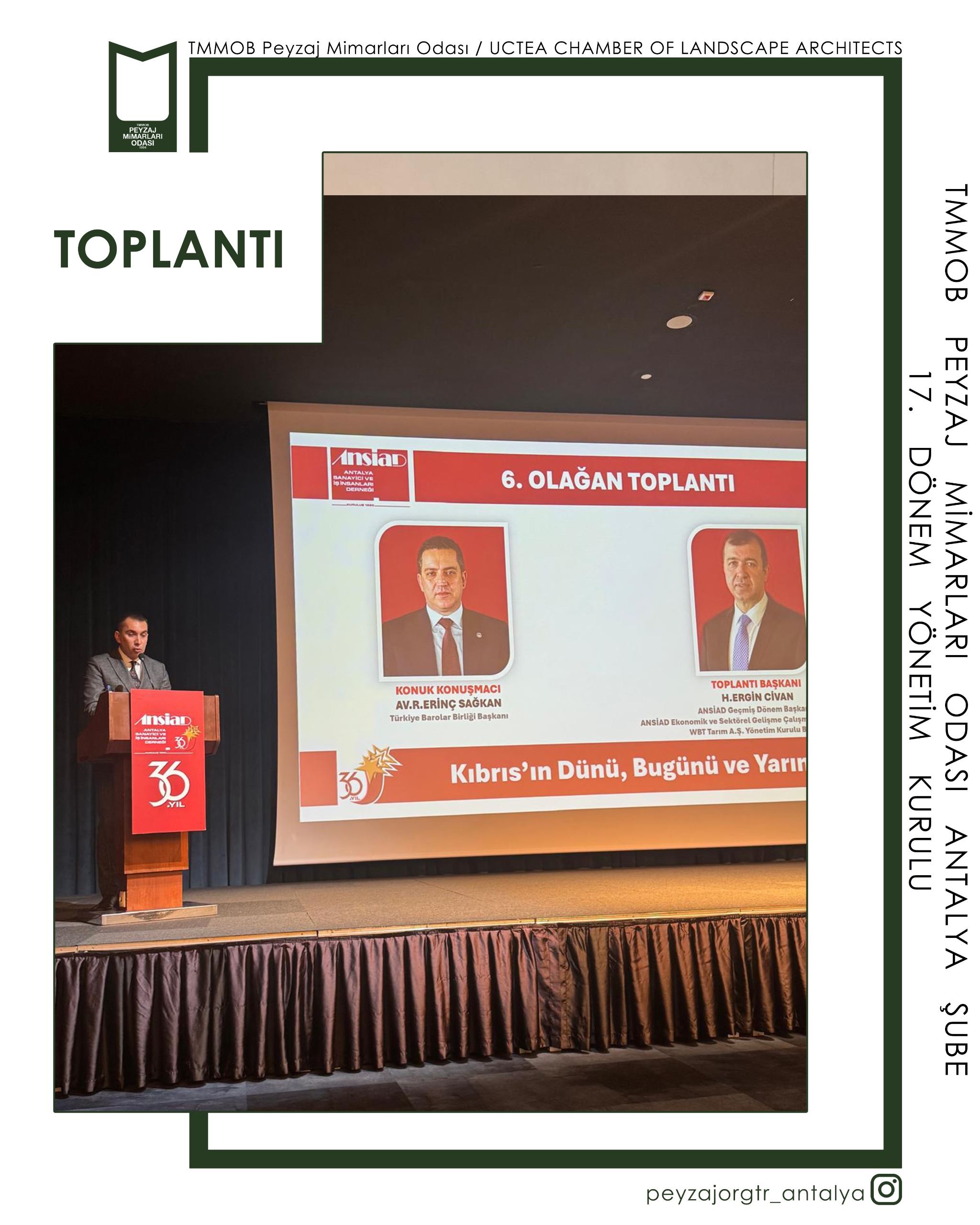 24 Mart 2026 tarihinde Antalya Sanayici ve İş İnsanları Derneği tarafından düzenlenen Kıbrıs'ın Dünü,Bugünü ve Yarını konu başlıklı ANSİAD 6. Olağan toplantısına Şubemizi temsilen Şube Başkanımız Bensu CÜCE katılım sağlamıştır.