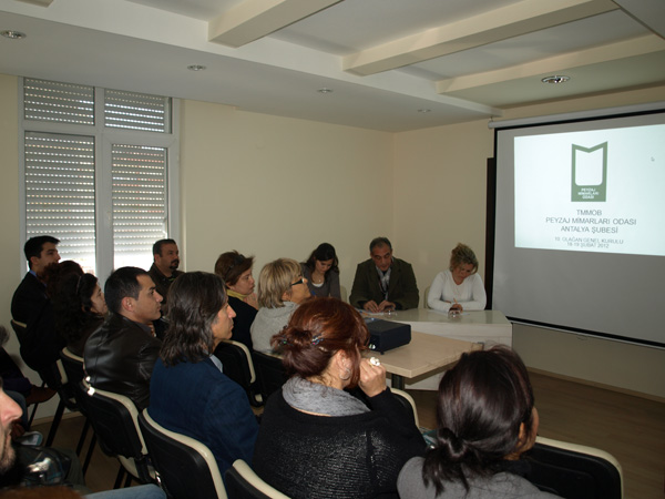TMMOB Peyzaj Mimarları Odası Antalya Şube 10. Olağan Genel Kurulu ve Seçimleri 18-19 Şubat 2012 tarihinde gerçekleştirildi.