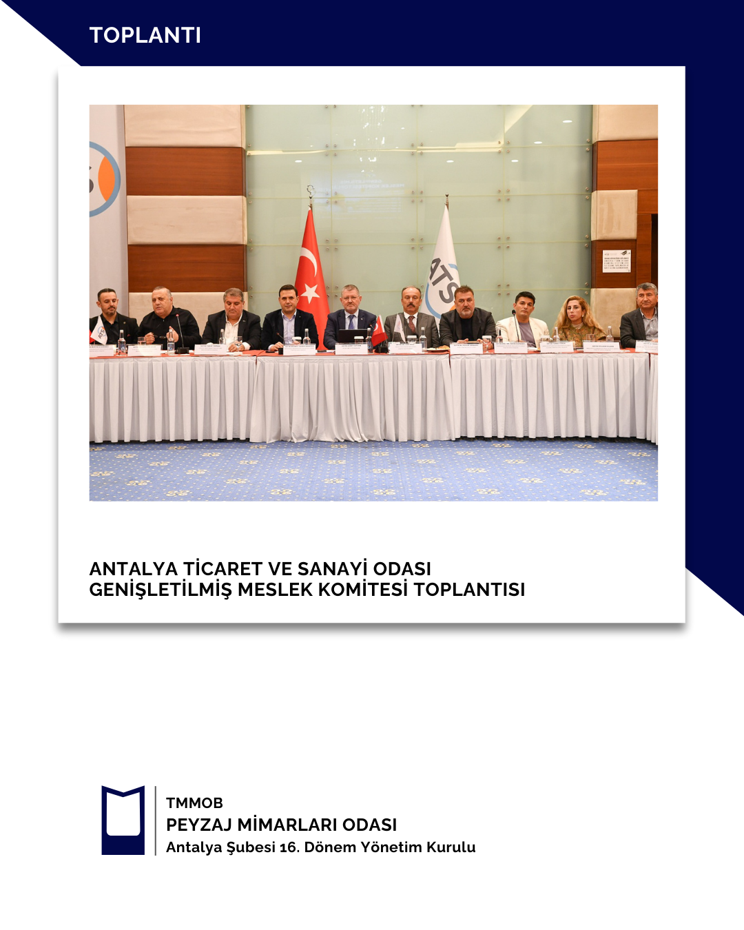 18 Aralık 2025 tarihinde Antalya Ticaret ve Sanayi Odası 30. Grup (İnşaat Faaliyetleri) Meslek Komitesi öncülüğünde, 24. Grup (Elektrik Enerjisi Üretim, Dağıtım ve İlgili Hizmet Faaliyetleri), 31. Grup (İnşaat Malzemeleri), 41. Grup (Gayrimenkul Faaliyetleri), 43. Grup (Mimarlık Faaliyetleri) ve 44. Grup (Mühendislik) meslek komitelerinin katılımıyla “Genişletilmiş Meslek Komitesi Toplantısı” gerçekleştirilmiştir.