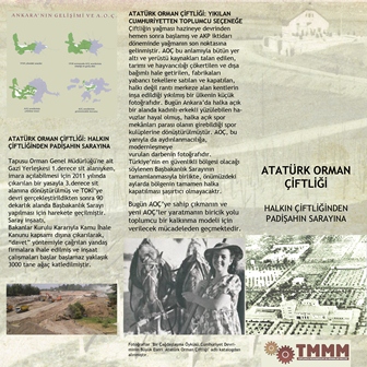 5 Ekim 2012 günü Başbakanlık konutu yapımı ve öncesinde Yeni Çiftlik kavşağı-hemzemin geçit yapımı ile bir tarihin yok edilmesine imza atanlar ve bu projenin perde arkası ile ilgili kazmaların vurulmasıyla başlayan AOÇ nin yok edilmesi planı ve perde arkası bir kez daha kamuoyu ile paylaşmak ve kent merkezinde sadece modern tarımın, üretimin merkezi olarak değil aynı zaman da Ankaralıların toplumsal e sosyal birliktelik ortamın yaratılacağı mekanları da bünyesinde barındıracak biçimde tasarlanmış AOÇ‘yi savunmak için bir araya gelen Toplumcu Mühendisler ve Mimarlar Meclisi tarafından düzenlenen ve Oturum Başknalığını Kaya GÜVENÇ‘in yapacağı Panel‘de Sn. Prof.Dr. Ruşen KELEŞ, Sn. Doç.Dr. Tarık ŞENGÜL ve Odamızı temsilen Sn. Redife KOLÇAK, AOÇ de yaşananları ve toplumsal varlık nedeni üzerine konuşma gerçekleştirdiler.