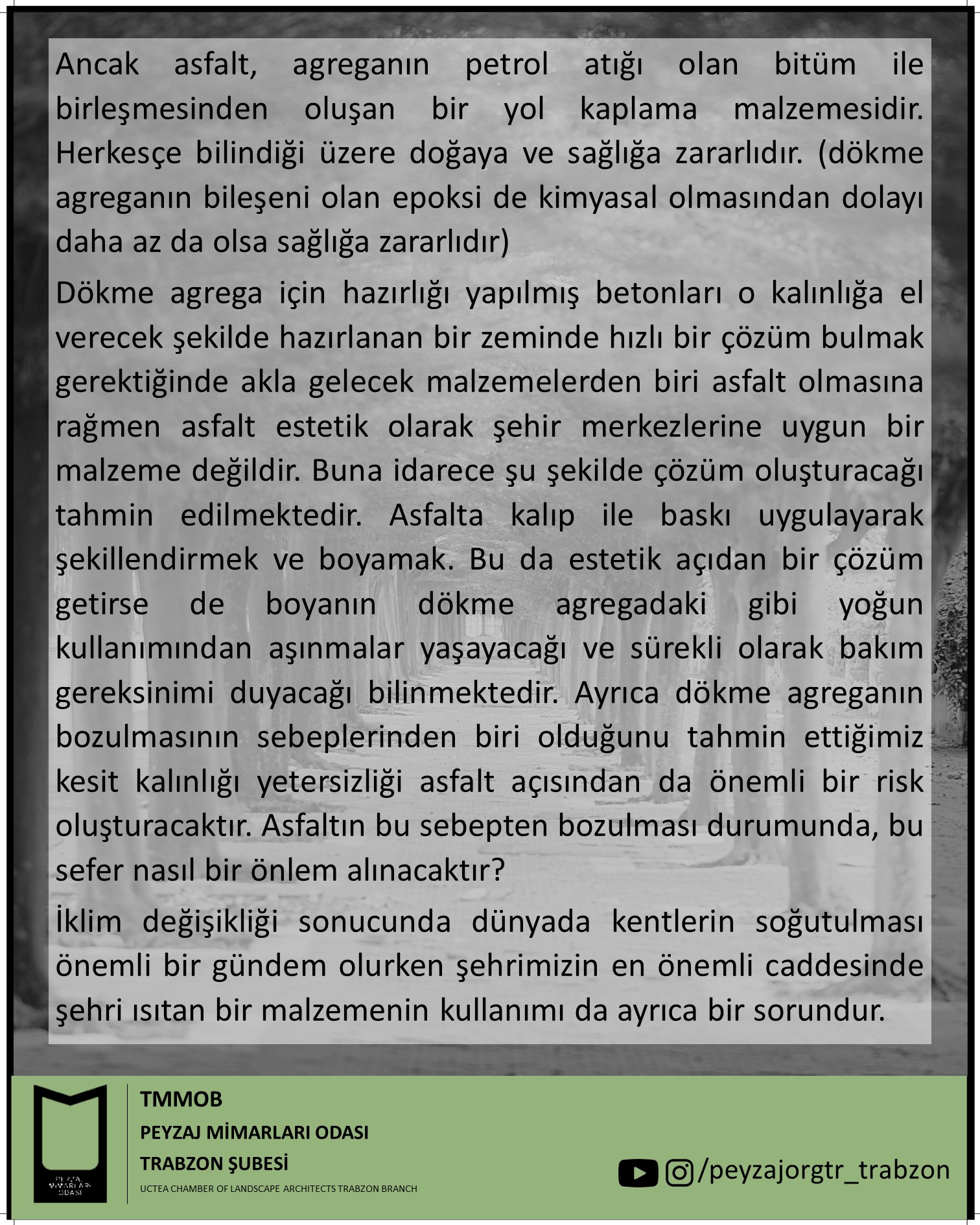İklim değişikliği sonucunda dünyada kentlerin soğutulması önemli bir gündem olurken şehrimizin en önemli caddesinde şehri ısıtan bir malzemenin kullanımı da ayrıca bir sorundur.