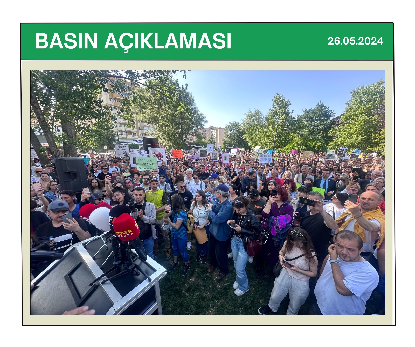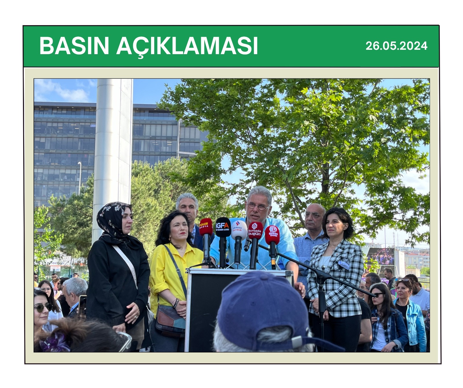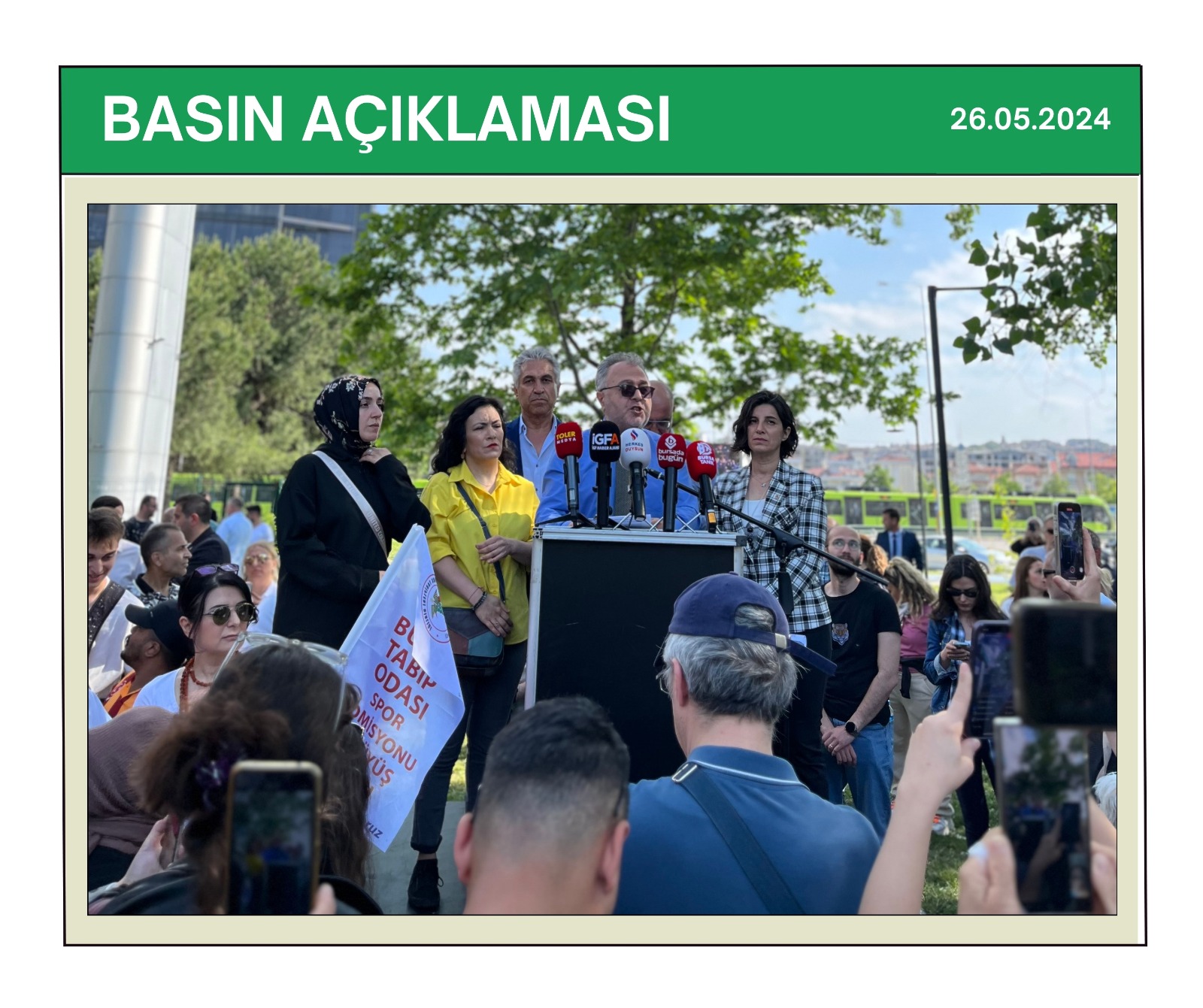 BASIN AÇIKLAMASI | SOKAKTAYIZ YANINIZDAYIZ BASIN AÇIKLAMASINA KATILIM SAĞLANDI.Bursa Veteriner Hekimler Odası, Bursa Tabip Odası, Bursa Barosu ve Bileşeni olduğumuz TMMOB Bursa İl Koordinasyon Kurulu’nca 26 Mayıs 2024 tarihinde Nilüfer Üç Fidan Parkı’nda düzenlenen basın açıklaması, mitinge dönüştü.