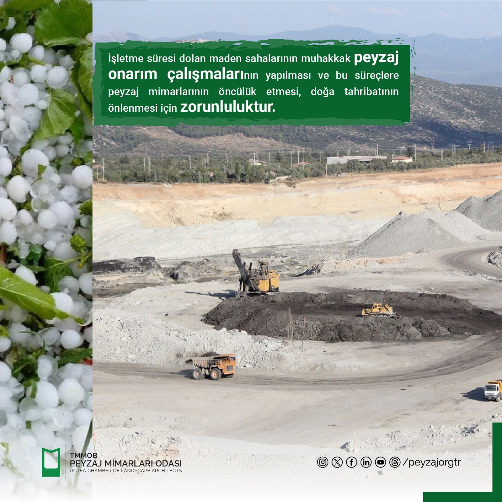 Ülkemizin taraf olduğu Avrupa Peyzaj Sözleşmesi, Paris İklim Anlaşması, Yeşil Mutabakat, Birleşmiş Milletler Sürdürülebilir Kalkınma Hedefleri göz önüne alındığında kentsel, kırsal, doğal, kültürel peyzajlar ile birlikte sit ve korunan alanlar, Ramsar Alanları vb yasa ve uluslararası anlaşmalarla korunması gereken alanların kurtarılmaya, korunmaya, akılcı ve doğru yöntemlerle planlanmaya ve tasarlanmaya ihtiyacı vardır. Bu sebeple peyzaj mimarlarının kamuda, T.C. Tarım ve Orman Bakanlığı`nda istihdamı şarttır!