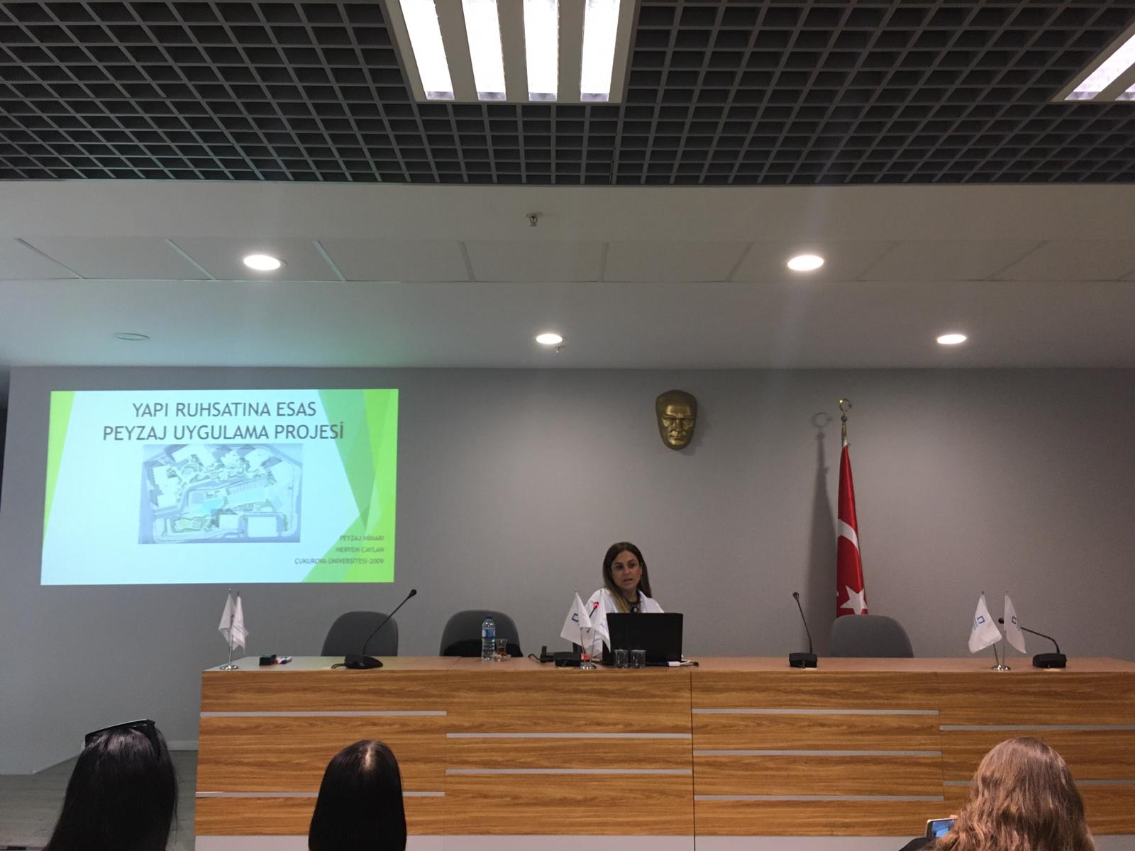 Meryem Çaylan, mesleğimizin peyzaj ve mimarlık alanındaki özelliklerini, birlikte nelere dikkat edilmesi gerektiği konularında bilgi aktarımında bulundu. Örnek uygulamalar ve projeler üzerinden karşılaşılan sorunlar ve çözüm önerilerini aktardı.