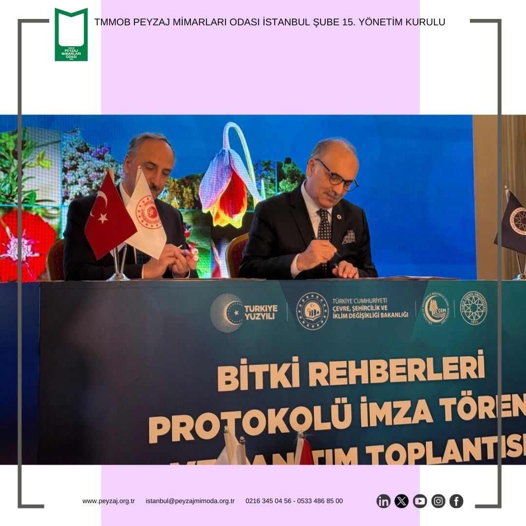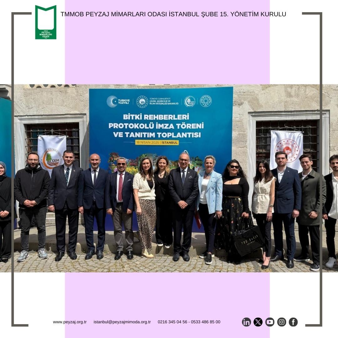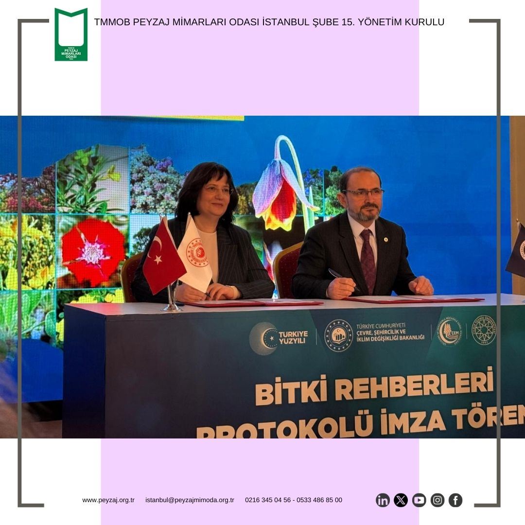T.C. Yıldız Teknik Üniversitesi Davutpaşa Kampüsü`nde düzenlenen, T.C. Çevre, Şehircilik ve İklim Değişikliği Bakan Yardımcısı Sayın Fatma VARANK`ın katılım sağladığı “Bitki Rehberleri Protokolü İmza Töreni ve Tanıtım Toplantısı`na Şubemizi temsilen Şube Başkanımız Sn. Evrim KARAMAN, Şube 2. Başkanımız Sn. Nilüfer BİRİNCİ, Şube Yazman Üyemiz Sn. Nisa TAŞDEMİR ve Yönetim Kurulu Üyemiz Sn. Nihan Sevinç MUŞDAL katılım sağlamıştır.