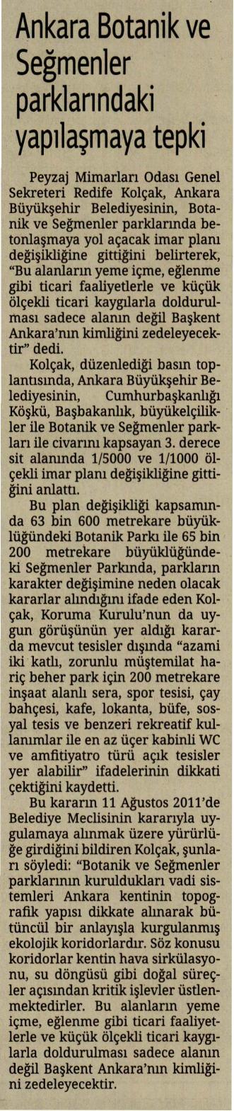 CUMHURİYET ANKARA - PARKLARDA YAPILAŞMAYA HAYIR. 26.08.2011