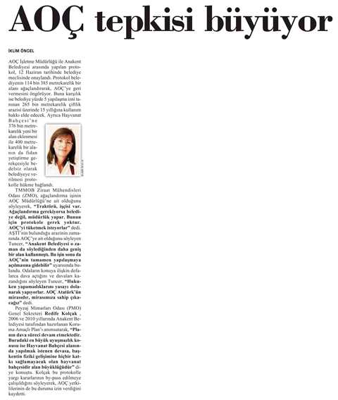 TMMOB Peyzaj Mimaları Odası Genel Sekreteri Redife KOLÇAK; 2006 ve 2010 yıllarında Anakent Belediyesi tarafından hazırlanan Koruma Amaçlı Nazım İmar Plan`ı anımsatarak, "Planın dava süreci devam etmektedir.Buradaki en önemli uyuşmazlık konusu ise Hayvanat Bahçesi alanında yapılmak istenen devasa, başkentin fiziki gelişimine hiçbir sağlamayacak olan hayvanat bahçesidir ve alan büyüklüğüdür." dedi.