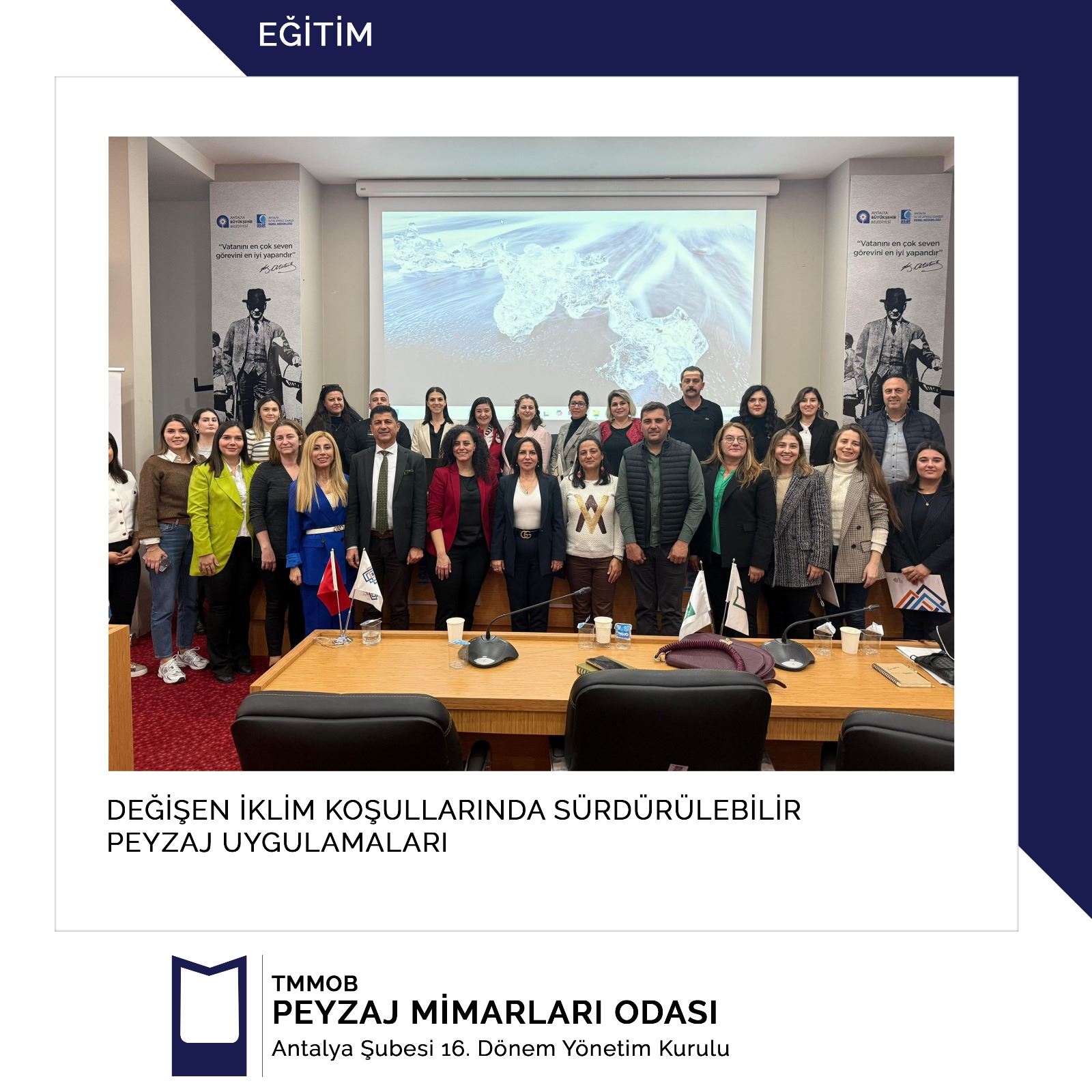 TMMOB Peyzaj Mimarları Odası Antalya Şubesi üyelerinin (15 kişilik kontenjanla) eğitime ücretsiz katıldığı bu eğitimde, değerli konuşmacılarımız: