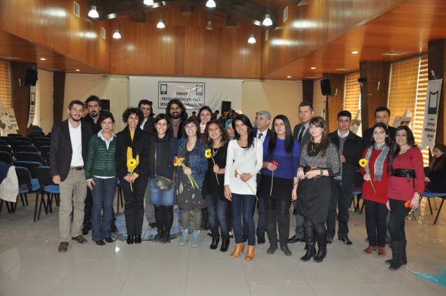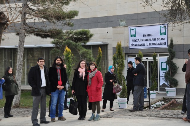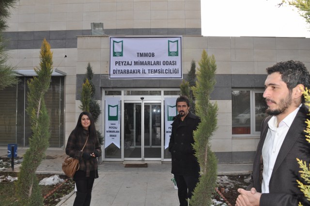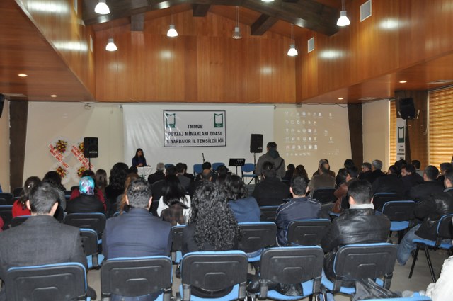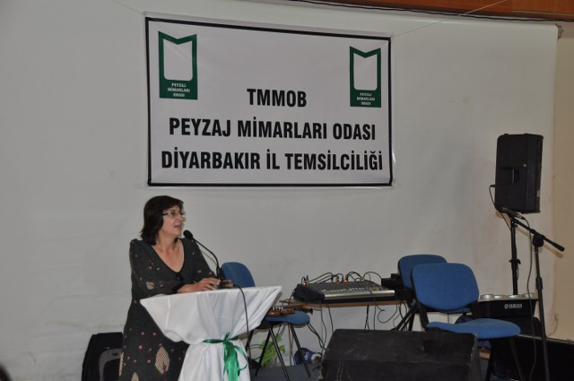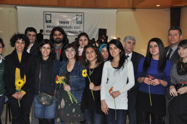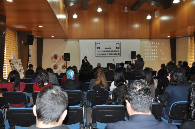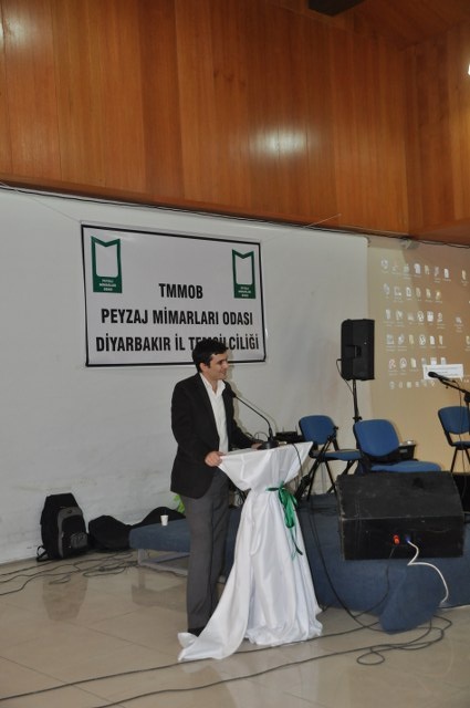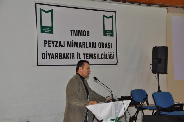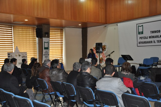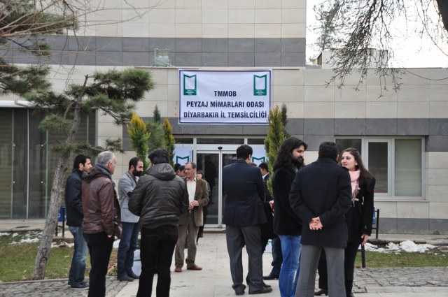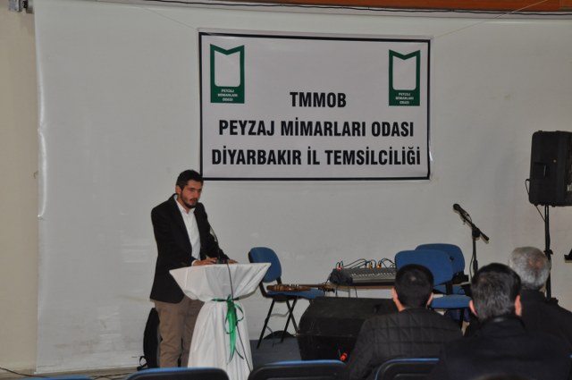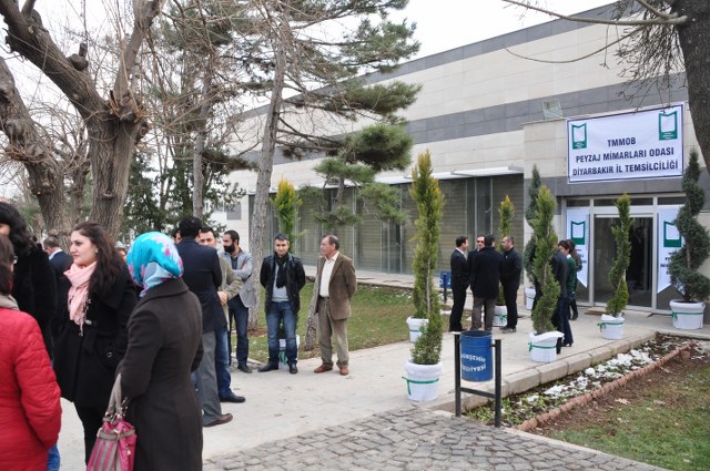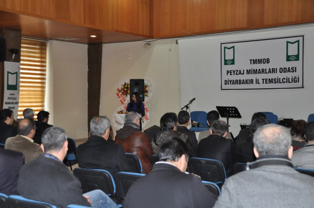 Oda Yönetim Kurulumuzu temsilen Genel Başkan Sn. Ozan YILMAZ ve Genel Sekreter Sn. Redife KOLÇAK ve Batman İl Temsilciliği‘ni temsilen Sn. Arjen RızaTURAN ve Sn. Nehir IRMAK‘ın yer aldığı açılış töreninde; Diyarbakır Belediye Başkanını temsilen Genel Sekreter Yardımcıs Sn. Abdullah SEVİNÇ, Diyarbakır Büyükşehir Belediyesi Fen İşleri Daire Başkanı Sn. Bülent UÇAN, Bağlar Belediyesi Belediye Başkan Yard. Sn Nimet TAŞ, Yenişehir Belediye Başkan Yrd. Sn. Şefik TÜRK, İl Özel İdare temsilcileri, Mimarlar Odası Şube Başkanı ve TMMOB İKK Sekreteri Sn. Necati Pirinççioğlu, TMMOB Makine Mühendisleri Odası Şube Başkanı Sn. Mesut ÇELİK, İnşaat Mühendisleri Odası Şube Başkanı Sn. Turan KAPAN, , Ziraaat Mühendisleri Odası Şube Başkanı Sn. Jihat ŞENGAL, Jeoloji Mühendisleri Odası Şube Başkanı Sn. Harun YALÇINKAYA, Maden Mühendisleri Odası Şube Başkanı Sn. Mustafa DOĞU, Şehir Plancıları Odası İl Temsilcisi Sn. İskender DEMİR‘in katıldığı resepsiyonda, Diyarbakır İl Temsilcisi olarak ataması yapılmış olan Sn. Ferit TUTŞİ‘nin " Neolotik dönemlerden günümüze toplumlar, kültürel kazanımlarını bulundukları yerel iklim ve doğadan esinlenerek oluşturmuşlardır. Böylece doğadaki farklılıklar toplumların zenginliklerinin yansıması olmuştur. Bu tarihsel süreç içerisinde toplum doğa ilişkilenmeleri günümüzde başka bir boyut kazanmıştır. Kapitalist sistemin ekonomik gelişmelere odaklı kentleşme modeli toplumun kültürel tarihsel ve ekolojik değerlerini bir meta haline getirme çabasıdır. Böylelikle istenildiği zaman alınıp satıla bilecek ve tüketilebilecektir. Bu anlayışa karşın kentleşmenin her aşamasında ekonomik düşünceden çok etik ve toplumsal kaygılar ön plana çıkmalıdır. Toplum, doğadan uzaklaştığı her saniye sosyal ve psikolojik sorunlarla karşılaşmaktadır. Bu da insanın, doğanın bir parçası olduğunun göstergesidir. Bölgede ki su kaynaklarını onların özelleştirilip suyun kullanım hakları anlaşmaları ile geleceğimizin ipotek altına alındığı HES projeleri bu bölgenin doğasını hedef almıştır. Korkunç boyuttaki bu doğal ve kültürel kıyımlar Hasankeyf örneğinde olduğu gibi devam etmektedir. Bölgede 4 ü bitmiş 4 ü devam etmekte 47 si proje aşamasında olmak üzere 55 HES mevcuttur. Su rejimleri üzerinde ki bu politika bölgedeki ormanlık alanlar üzerinde de uygulanmaktadır. Kırsal alandaki yerleşim yerleri ve ormanlık alanların yakılmasıyla adeta bir doğa soykırımı yapılmak istenmektedir. Geçen 2012 yılı içerisinde 87 yangın olmuş meşe ağaçları başta olmak üzere çamlık alanlar tahrip olmuştur. İnsana, doğaya, kültüre, tarihe duyduğumuz saygı ile TMMOB Peyzaj Mimarları Odası Diyarbakır İl Temsilciliği olarak başta kentimizin sorunlarını mesleki örgütlüğümüzle çözüm alternatifi olmayı bir sorumluluk olarak görüyoruz. " şeklinde yaptığı açılış konuşması sonrası, TMMOB ve bileşenleri ile birlikte mesleki alanlarda yapılacak çalışmalrla peyzaj mimarlığı disiplinin önemi ve özellikle belediye yönetimlerinde imar hukuku ve şehircilik ilkeleri doğrultusunda peyzaj mimarlarının yer almasının önemine yapılan vurgu üzerine konuşma yapan Sn. Ozan YILMAZ‘ın konuşması ile Diyarbakır İl Temsilciliği çalışma hayatına başlamış oldu.