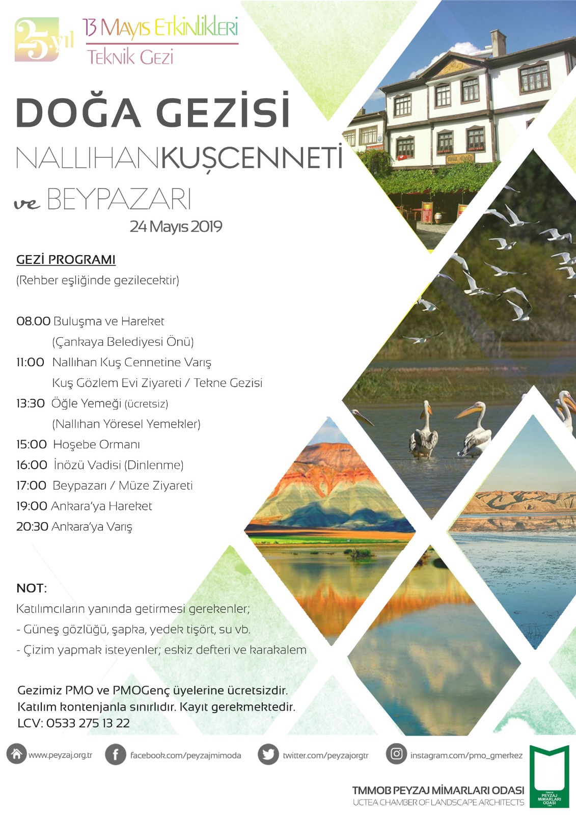 13 Mayıs etkinlikleri kapsamında 24 Mayıs 2019 tarihinde Nallıhan Kuşcenneti ve Beypazarı doğa gezisi düzenliyoruz.