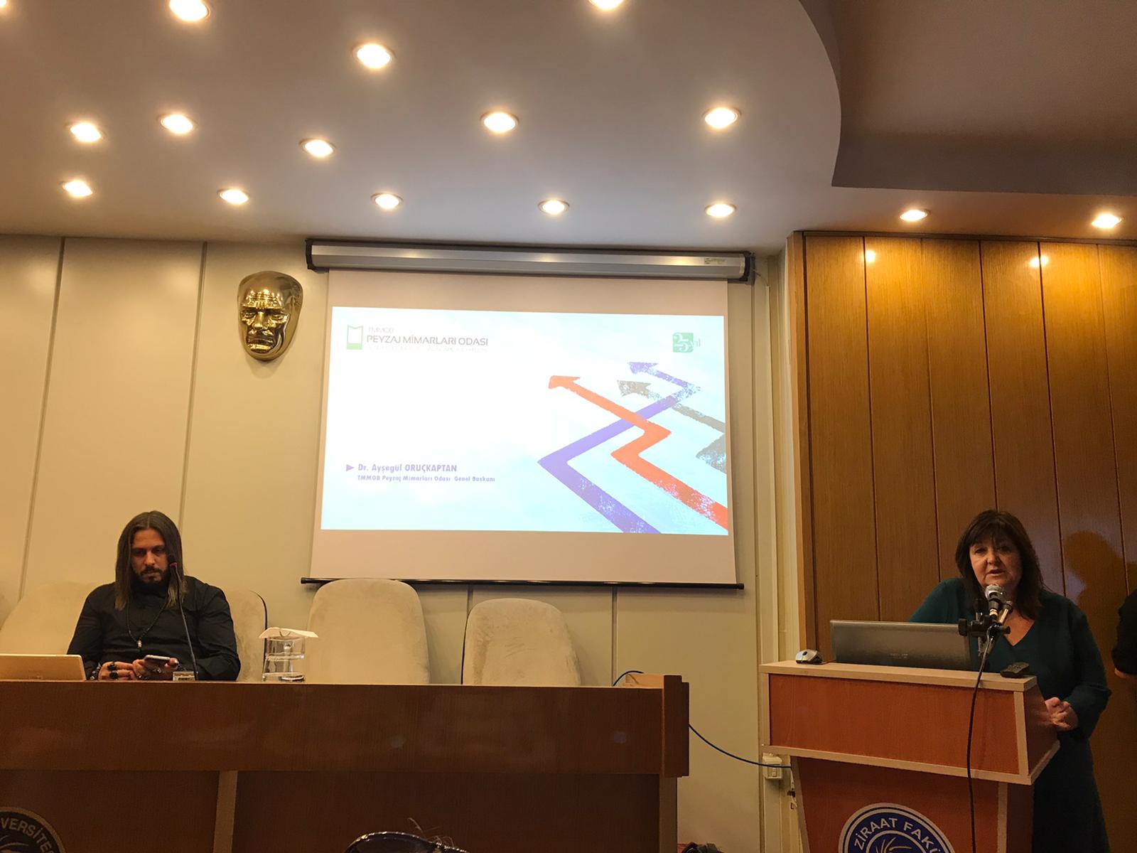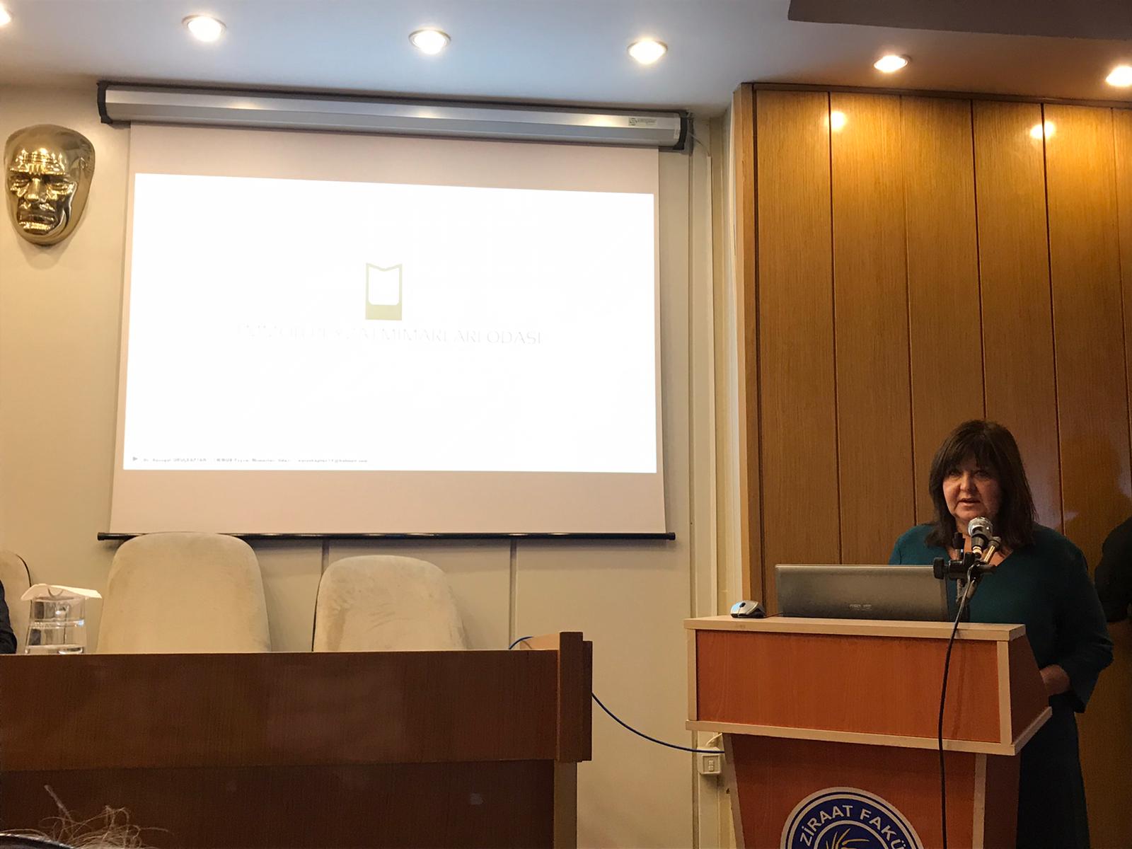 Ege Üniversitesi Ziraat Fakültesi Peyzaj Mimarlığı Bölümü Kariyer Yolculuğu Söyleşileri kapsamında gerçekleştirilen "Kamu ve Özel Sektörde Kariyer Yolculuğu" etkinliğinde Odamız Genel Başkanı Dr. Ayşegül ORUÇKAPTAN 2 Aralık 2019 Pazartesi günü saat: 13:30`da Ege Üniversitesi Ziraat Fakültesi Dekanlık Toplantı Salonu`nda sunum gerçekleştirdi.