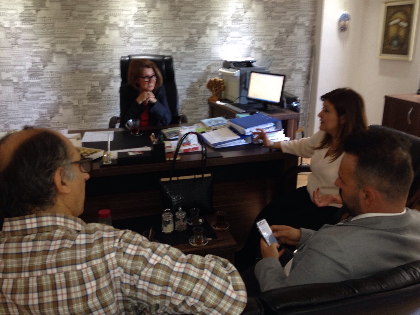 Oda Genel Başkanı Ayşegül Oruçkaptan, İzmir Şube Başkanı Özay Yerlikaya, Yönetim Kurulu II. Başkanı Elvin Sönmez Güler, Şube Yazmanı Nurdan Erdoğan, Şube Yönetim Kurulu Üyeleri Esra Erkmen, Gül Başak Ekinci, Fırat Dersimli, üyelerimizden Edip Güler, Ayşe Gevrek Gözsoy ve Oda Teknik Personeli Harun Kılıçoğlu 3 Kasım 2015 tarihinde Ege Üniversitesi Ziraat Fakültesi Peyzaj Mimarlığı Bölümü‘nü ziyaret ederek akademisyenler ve öğrencilerle bir araya geldi.