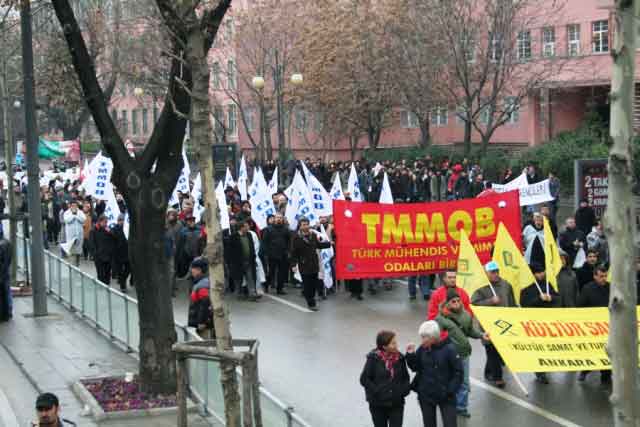 Türk-İş tarafından düzenlenen mitinge DİSK, KESK, TMMOB ve TTB‘nin yanı sıra çeşitli siyasi partiler ve demokratik kitle örgütleri de destek verdi.