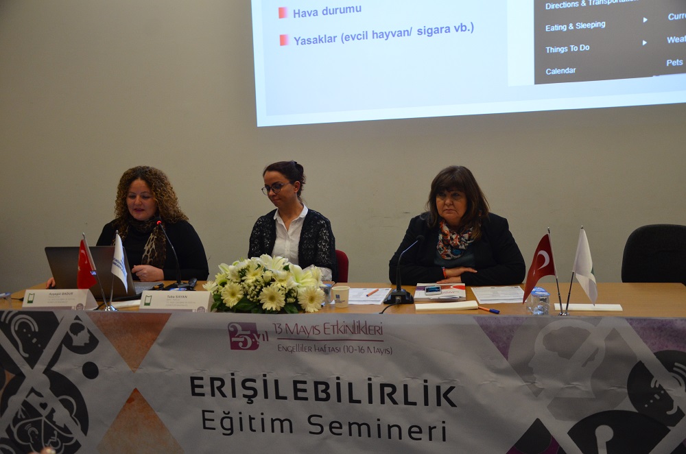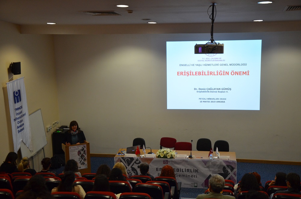 10-16 Mayıs Engelliler haftasında gerçekleştirilen seminerde, Dr. Deniz Çağlayan Gümüş "Erişilebilirlik Filmi ve Erişilebilirliğin Önemi", İnş. Yük. Müh. Hüseyin Karadağ "Erişilebilirlik Mevzuatı", Peyzaj Y. Mim. Gamze Feyzioğlu "Farklı Gruplarda Yer Alan Engellilerin Yapılı Çevredeki Gereksinimleri ve Yapılması Gerekenler", Peyzaj Mimarı Ayşegül Badur "Erişilebilirlik Açık Alan Düzenlemeleri ve Çocuk rehberi", "Erişilebilirlik İzleme ve Denetleme Formları İle Uygulamalı Tespit Yapılması", Şehir Plancısı Tuba Sayan "Hissedilebilir Yürüme Yüzeyi İşaretleri Uygulama Esasları", "Uygulama Proje Örnekleri" başlıklarında sunumlarını gerçekleştirdiler.