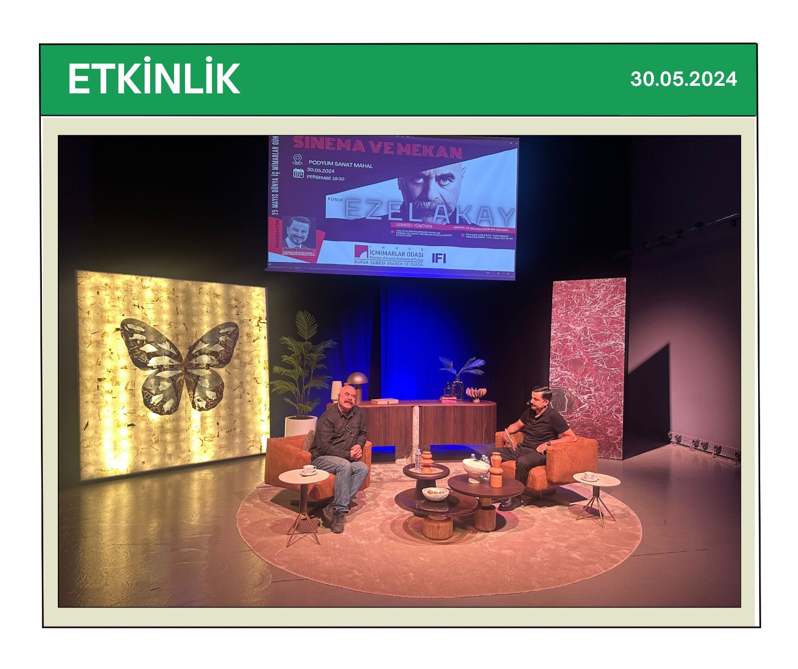 ETKİNLİK | “SİNEMA VE MEKAN” ADLI SÖYLEŞİYE KATILIM SAĞLANDI.TMMOB İçmimarlar Odası Bursa Şubesi tarafından 30 Mayıs 2024 tarihinde Podyum Sanat Mahal’de gerçekleştirilen “Sinema ve Mekan” adlı söyleşiye katılım sağlandı.