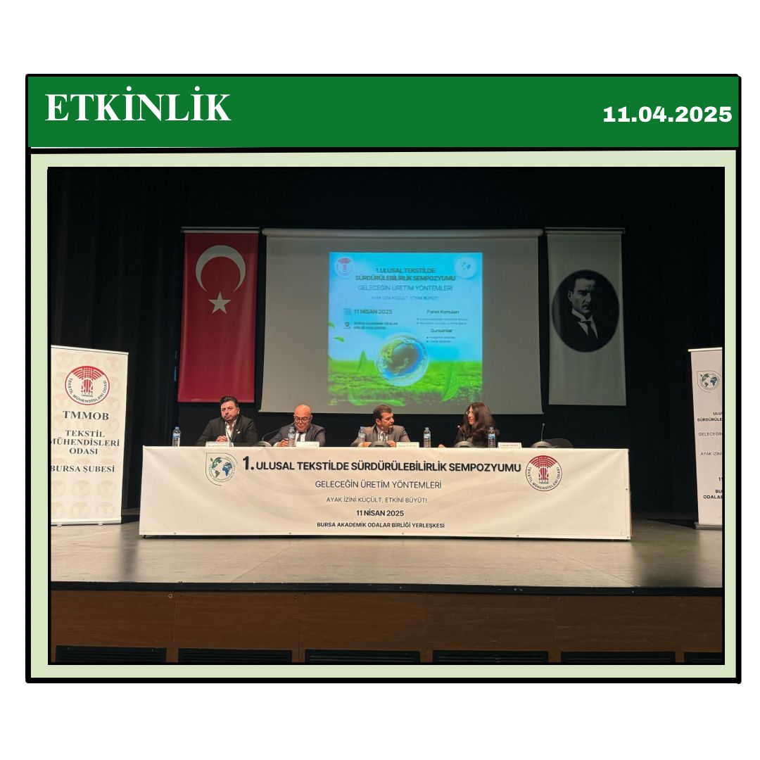 TMMOB Tekstil Mühendisleri Odası Bursa Şubesi tarafından düzenlenen, 11 Nisan 2025 Cuma günü saat 09:00’da Bursa Akademik Odalar Birliği’nde “Ulusal Tekstilde Sürdürülebilirlik Sempozyumu” adlı etkinlik gerçekleştirildi.