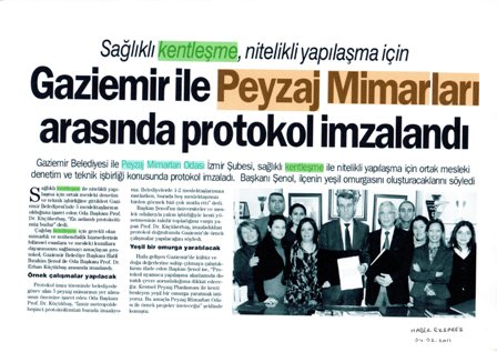 | SAĞLIKLI KENTLEŞME, NİTELİKLİ YAPILAŞMA İÇİN GAZİEMİR İLE PEYZAJ MİMARLARI ARASINDA PROTOKOL İMZALANDI |
