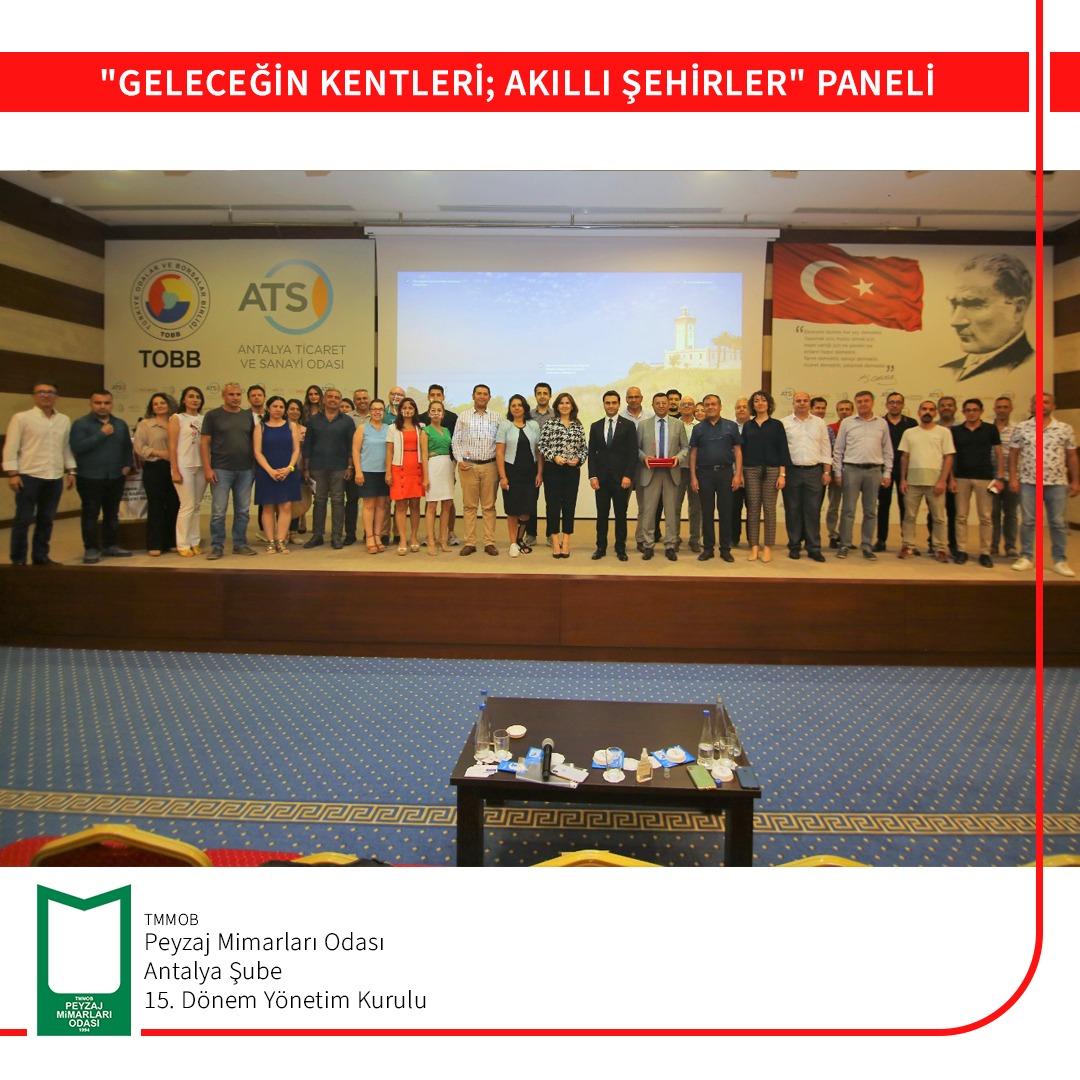 01 Temmuz 2022 tarihinde TMMOB Harita ve Kadastro Mühendisleri Odası Antalya Şubesi tarafından düzenlenen GELECEĞİN KENTLERİ; ‘`AKILLI ŞEHİRLER`` Paneli Antalya Ticaret ve Sanayi Odası Konferans Salonu`nda gerçekleştirilmiştir.