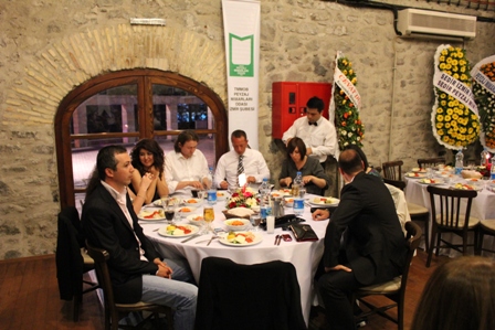 14 Mayıs 2011 Cumartesi akşamı Tarihi Havagazı Fabrikası Taş Binası’nda gerçekleşen yemeğe Bornova Belediye Başkanı Sn. Prof. Dr. Kamil Okyay Sındır, Güzelbahçe Belediye Başkanı Sn. Mustafa İnce, E.Ü. Genel Sekreteri Sn. Prof. Dr. M. Bülent Özkan, TMMOB’a bağlı Odaların başkanları ve Yönetim Kurulu Üyeleri ile çok sayıda akademisyen, gazeteci ve meslektaşlarımız katıldı.