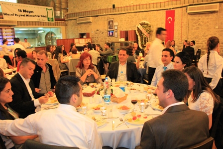 14 Mayıs 2011 Cumartesi akşamı Tarihi Havagazı Fabrikası Taş Binası`nda gerçekleşen yemeğe Bornova Belediye Başkanı Sn. Prof. Dr. Kamil Okyay Sındır, Güzelbahçe Belediye Başkanı Sn. Mustafa İnce, E.Ü. Genel Sekreteri Sn. Prof. Dr. M. Bülent Özkan, TMMOB`a bağlı Odaların başkanları ve Yönetim Kurulu Üyeleri ile çok sayıda akademisyen, gazeteci ve meslektaşlarımız katıldı.