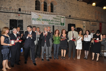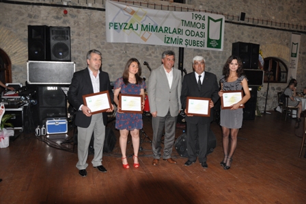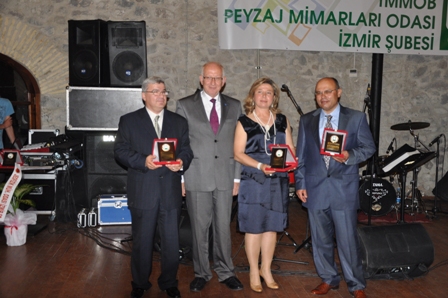 Odamıza katkıda bulunan kişi ve kurumlara teşekkür belgeleri verildi. Gecenin en önemli anlarından biri ise meslekte 25 nci yılını kutlayan meslektaşlarımız Güzelbahçe Belediyesi Başkanı Sn. Ö. Mustafa İnce, Sn. Neşe Bodur, Sn. R. Koray Altın, Sn. Abdurrahman Erturan, Sn. M. Zerrin Yıldızoğlu, Sn. Adnan Kaplan ve Yönetim Kurulu Üyemiz Sn. Nuran Altun`un plaket töreniydi. Meslektaşlarımızın plaketlerini Prof. Dr. M. Bülent Özkan ve Prof. Dr. İlçin Aslanboğa takdim etti.