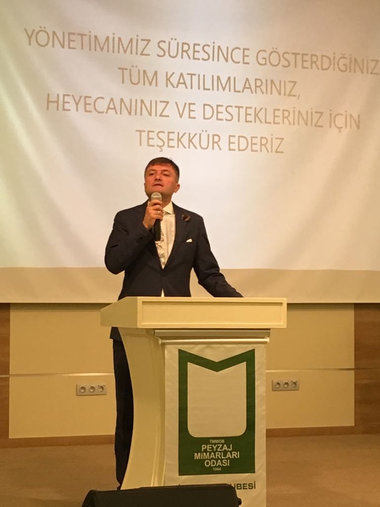 Şube Başkanımız Sn. Murat ERMEYDAN`ın açılış konuşmasında; Peyzaj Mimarlarının hakkı olan, inşaat ruhsatlarının ekinde peyzaj projesinin istenmesini takip ediyoruz. Bu konuda belediyelerle görüşmelerimiz devam ediyor. Bu dönemde de komisyonlar kurarak faaliyetlerimizi yürütüyoruz. Komisyon faaliyetlerine katılımınız bizim için önem taşımaktadır. Yine bu dönem içerisinde eğitim faaliyetleri, istihdamı artırıcı çalışmalar, teknik geziler devam edecektir. 12. Dönem Yönetim sürecinde büyük bir sempozyum ve uluslararası IFLA kongresini gerçekleştirmeyi hedefliyoruz." dedi. Yönetim Kurulumuz tarafından gerçekleştirilen faaliyetlerin sunumu da davetliler tarafından ilgiyle takip edildi.